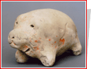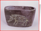 在没有文字之前,中国古人曾经通过绘画、雕塑和陶塑等形式表现猪的主题。全国各地曾经出土过大量的以猪为题材的文物,使我们能够清楚地了解古代中国猪和养猪业的历史。著名的如在南方的浙江余姚河姆渡文化遗址出土的造型精美、绘画生动的猪纹陶钵。以前一些古代学者认为猪不可入画。这个远古时代的陶钵就是一个反证。猪被画上陶钵,可能有它的实用意义,也许这个陶钵就是专门装饲料用来喂猪的,同时也包含着当时人们对于猪的某种崇拜意识。而从北方红山文化的玉猪龙身上,更是明显地体现出这一点。肃慎人和河姆渡人有关猪的两件陶器,可以看出古代我国北方和南方的养猪业都是十分发达的。有趣的是,2004年5月,在上海崧泽文化遗址的发掘过程中,在发现“上海最早的先民”头盖骨的同时,还出土了上海最早的“猪形象”。这只上有红彩的陶塑小猪圆咕隆咚,肥头肥脑,双眼鼓突,吻部前拱,腹圆下坠,四腿粗短,野猪的特征几乎荡然无存,非常像现代常用的猪形储币罐。这一发现证明,上海地区6000年前就有家猪了,这头陶猪也不失为中国最早的“猪形象”之一。这一新的考古发现把原来在考古中发现上海地区有家猪的历史往前推了近一千年。