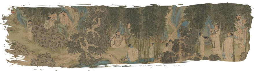 ,虽然画面上只保留了四个人物,但根据其形象和配图的程式,仍可以确认这件作品应该是“竹林七贤图”的残本。