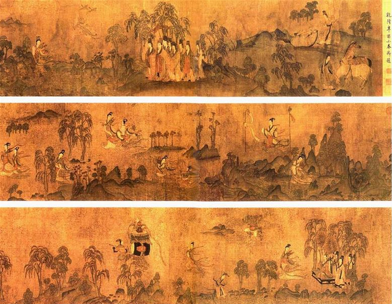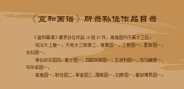 ,卷首则有 “瘦金书”题“孙位高逸图”五字,一般认为是宋徽宗赵佶手书。