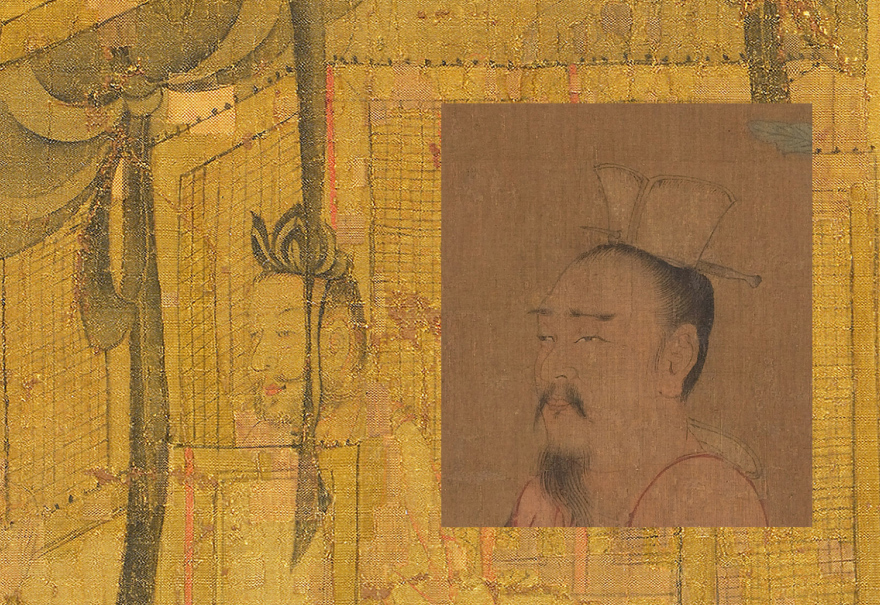 《历代帝王图》又称《古帝王图》。此图绢本,设色,纵51.3厘米,横531厘米。现藏美国波士顿美术馆,全卷共画有自汉至隋十三位帝王的画像,从画像来看,虽仍有程式化的倾向,但在人物个性刻画上表现出很大的进步,不落俗套,而显得个性分明;画中按等级森严的封建伦理观念,处理人物的大小。《历代帝王图》用重色设色和晕染衣纹的方法,有佛教艺术的影响。右图人物从左到右为:北周武帝宇文邕、陈后主陈叔宝。