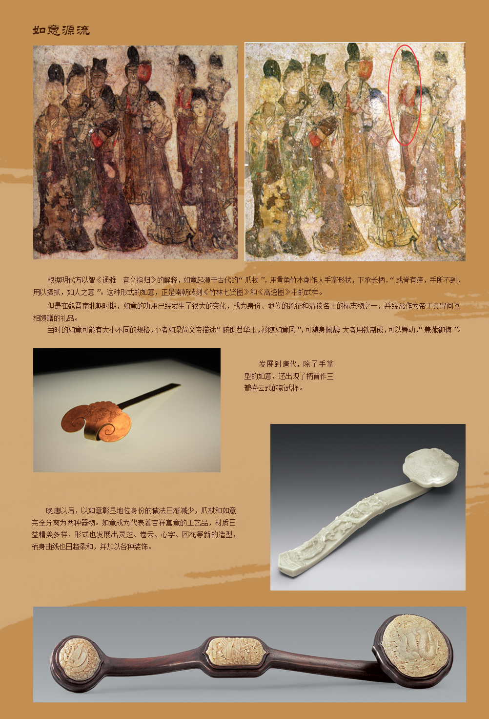 如《高逸图》右起第二位人物手持一杆长柄如意,正襟危坐,双目凝神,若有所思,与南京西善桥东晋墓砖刻《竹林七贤图》中用手玩弄如意的王戎形象颇为相似 (图片19)