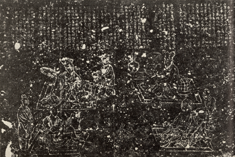 ,也有痕迹可循。石刻本《竹林七贤图》为上文下图的构成样式,上部刻有“晋河内竹林七贤图并传”一文,现存山涛、向秀、阮籍、阮咸四人史传,其余三人散失。这个版本虽然年代较砖刻为晚,但可贵的是其中图像的镌刻顺序与行文记载顺序一致,其人物形象在动作细节、环境陈设、器物形制方面与《高逸图》更为近似。