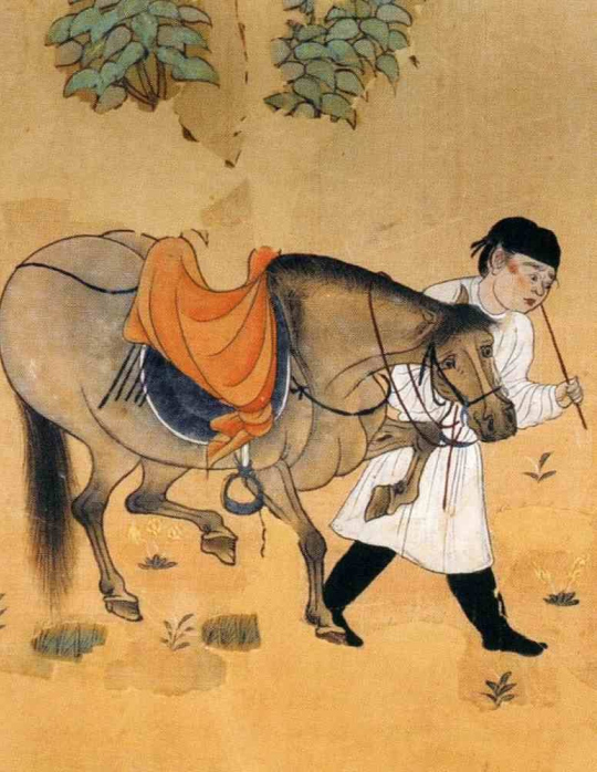 然而,在有些文字记载中,孙位的艺术风格却与《高逸图》截然相反。《图画见闻志》说他“笔锋狂纵,形制诡异” ,“不以傅彩为功”;司马垔在《高逸图》的卷后跋中也表示此画“笔意古劲,有非画史所及”。这说明孙位作品有工细与疏放两种表现形式。再细读《益州名画录》对他作品的描绘:画鹰犬之类“皆三五笔而成。”而花弓弦斧柄之属,则描绘工细“如从绳而正矣”,似乎也证明了这一特点。