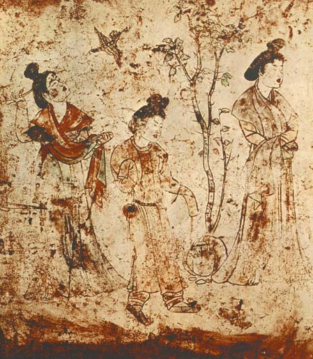 唐房龄公主墓壁画侍女图
