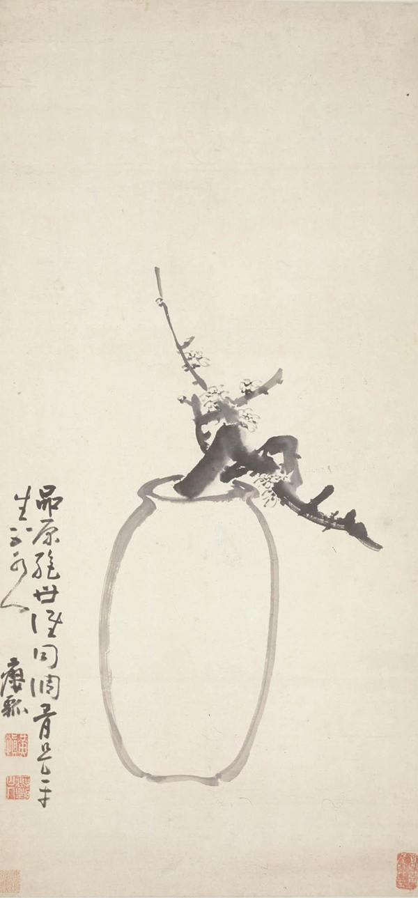相比花型花色,梅花的姿态是更具艺术性的元素。梅的枝干疏朗横逸,具有独特的线条造型感,瘦劲苍古,具有深沉的力量感。梅开于冰雪中,又带有一股冷冽清澈的香气,沁人心脾。而当它以奇崛之姿,具清幽之气,闲开于水边墙角,映照于雪月之下,便带上了天然的疏离感和高傲感,形成了传统文化中对隐士风度的完美映射,也使清寒幽峭成为梅花审美的主流。