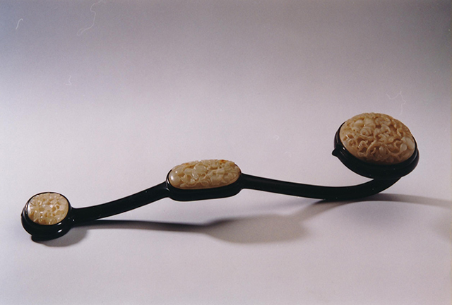 魏晋时期佛教僧人或菩萨造像手中常见一种持物,梵名“阿那律”,用于记录讲经内容以备忘,其形与爪杖相近,汉译亦袭用如意之名。而随着佛教对中国文化的影响日深,如意在士人阶层中也获得青睐,常被随身携带,于实用之外,或助清谈,或指挥军伍,或击节歌舞,成为代表身份和气质的“握君”“执友”。到了唐宋时期,如意在保持了实用功能的同时,作为佛教与道教中的法器,取吉呈祥的意义进一步发展。
