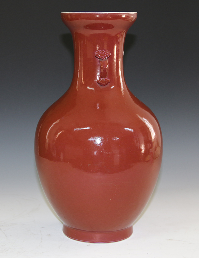 清 光绪辛卯年景德镇窑红釉如意耳瓶