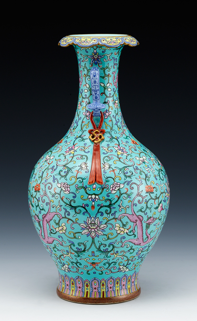 清 嘉庆景德镇窑粉彩缠枝花纹如意耳瓶