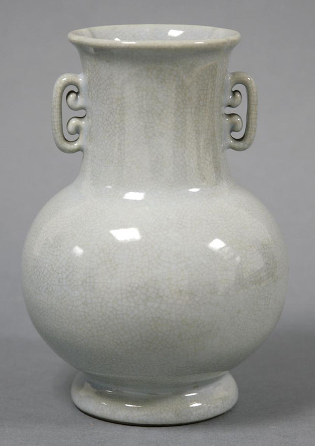 清 乾隆景德镇窑仿汝釉如意双耳瓶