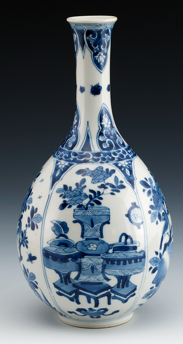 清 康熙景德镇窑青花如意花卉纹盖瓶1