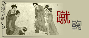 “蹴鞠当场二月天,仙风吹下两婵娟。汗沾粉面花含露,尘扑蛾眉柳带烟。翠袖低垂笼玉笋,红裙斜曳露金莲。几回蹴罢娇无力,恨杀长安美少年”.蹴鞠又名“蹋鞠”、“蹴球”、“蹴圆”、“筑球”、“踢圆”等,它起源于春秋战国时期的齐国故都临淄,唐宋时期最为繁荣,经常出现“球终日不坠”,“球不离足,足不离球,华庭观赏,万人瞻仰”的情景,且有很多女性参加到这种活动中来。蹴鞠有直接对抗、间接对抗和白打三种形式,通常女性采用的是“白打”,主要是比赛花样和技巧,亦称比赛“解数”,每一套解数都有多种踢球动作,如拐、蹑、搭、蹬、捻等。 |