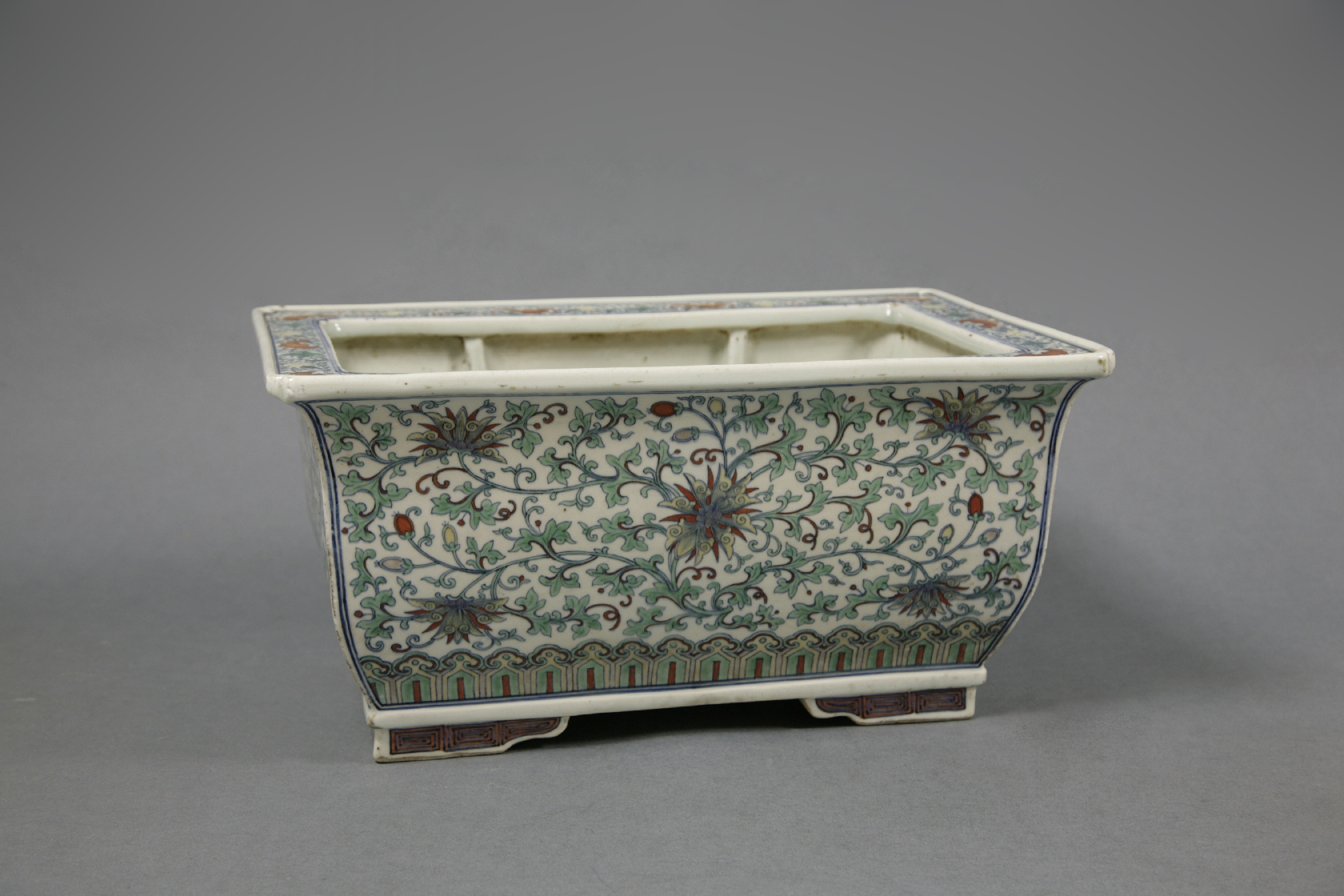 景德镇窑斗彩缠枝莲纹长方盆