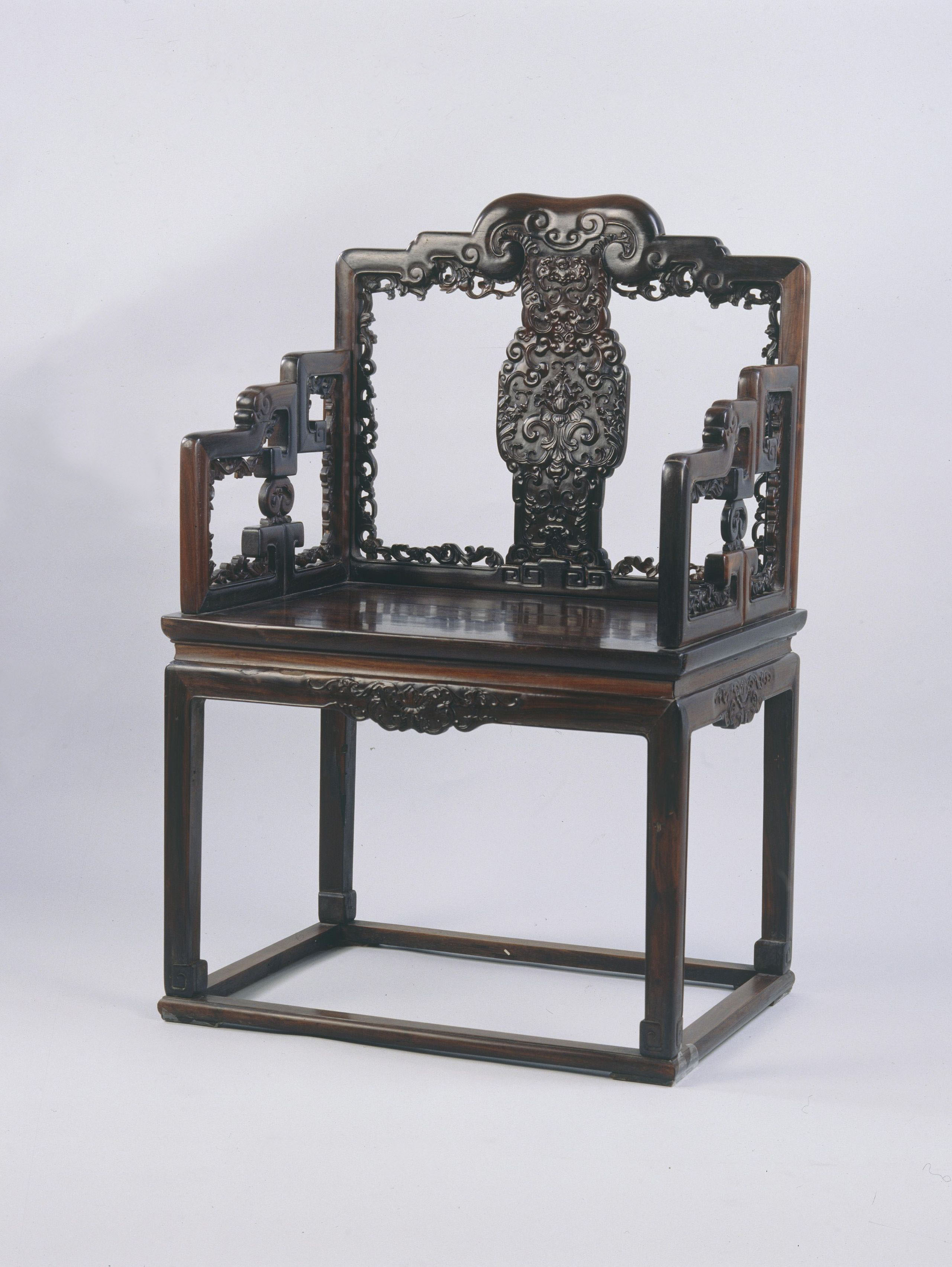紫檀雕番莲云头搭脑扶手椅