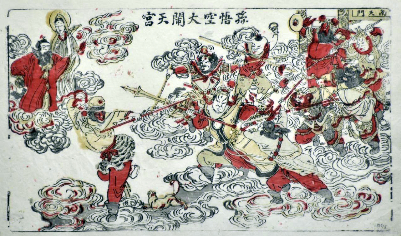 江苏苏州桃花坞木版年画 孙悟空大闹天宫