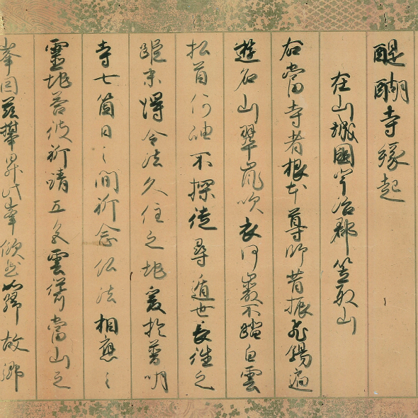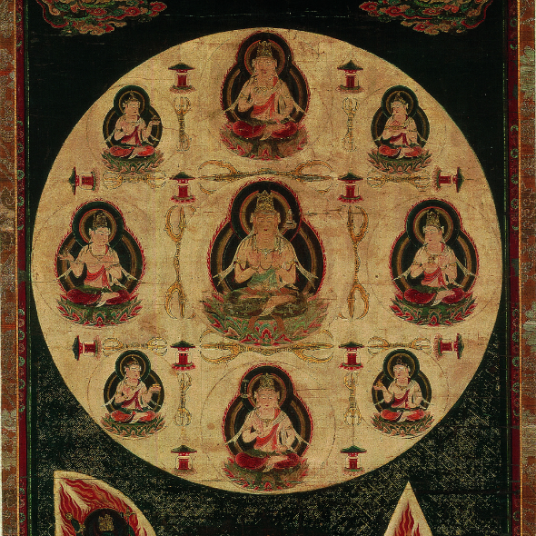佛教自两汉始从印度传入中国,经过近三百年逐渐本土化成为中国佛教。公元7世纪,印度僧人善无畏、金刚智和西域僧人不空将胎藏界和金刚界密法及其代表的纯正密宗带入中国。长安青龙寺高僧惠果从不空处受金刚界密法,又从善无畏的弟子玄超处受胎藏界密法,之后融会二法,倡立“金胎不二”学说。日本僧人空海作为遣唐使来到中国,在青龙寺拜惠果为师,受“金胎不二”之法。回国后,空海创立日本真言宗,又称“东密”。醍醐寺的创始人圣宝即是空海的再传弟子。