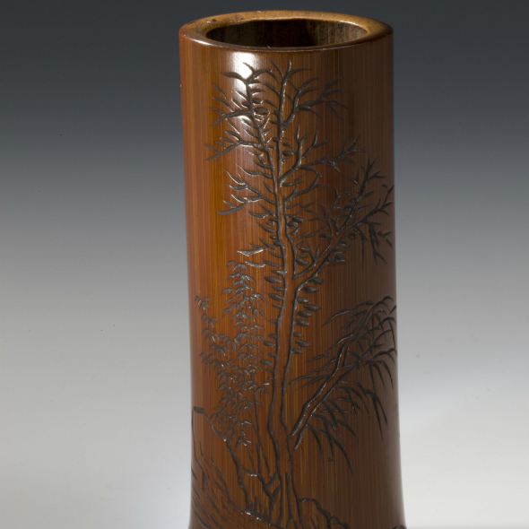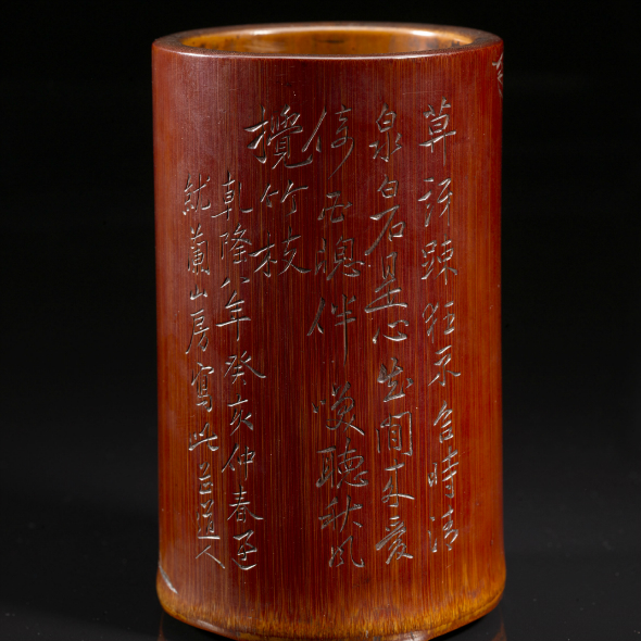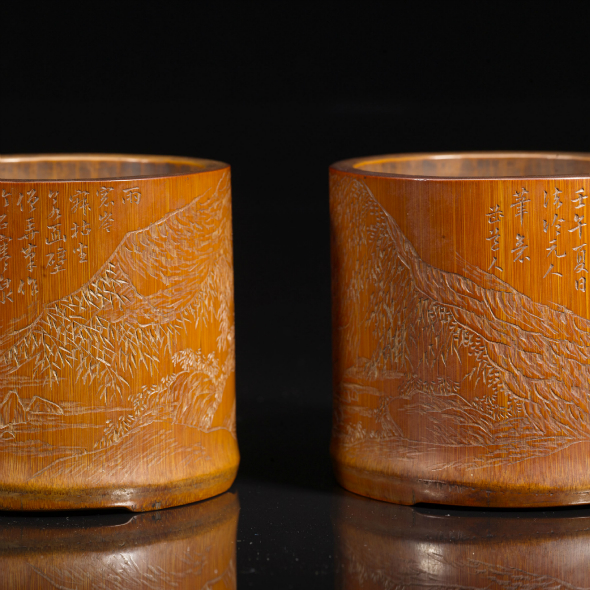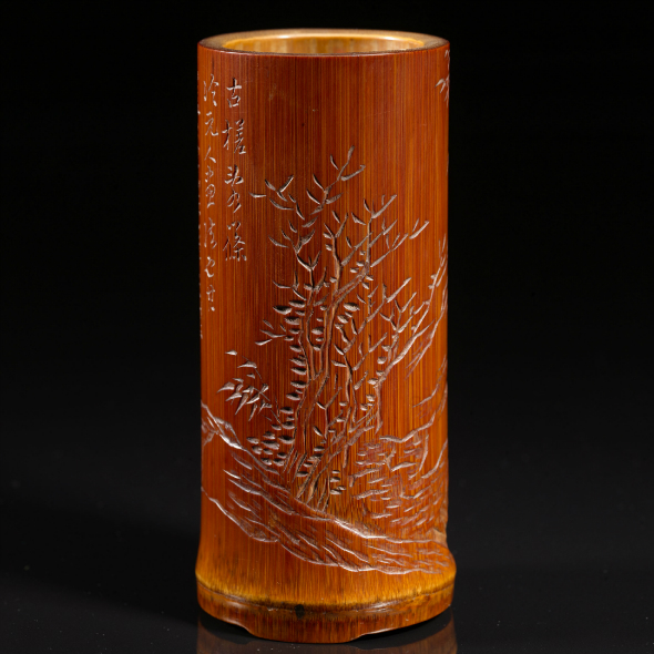 Zhou Hao (ca.1685-1773), also known by his zi (courtesy name) Jinzhan and his hao (literary name) Zhiyan, is considered not only a great master of bamboo carving in Jiading area (now belongs to Shanghai) but an artist of great influence and landmark in the history of Chinese bamboo-carving art as well. The years Zhou Hao had been living actually ushered in the last golden age of ancient Chinese craft arts, during which different types of carving arts including bamboo-carving had been developed to their peaks. After fully mastering the bamboo-carving technique of Jiading School, Zhou Hao began to apply the conception and style of literati painting to his artworks, which created a new carving style emphasizing "using a carving knife as a brush", extremely popular among the intellectuals.