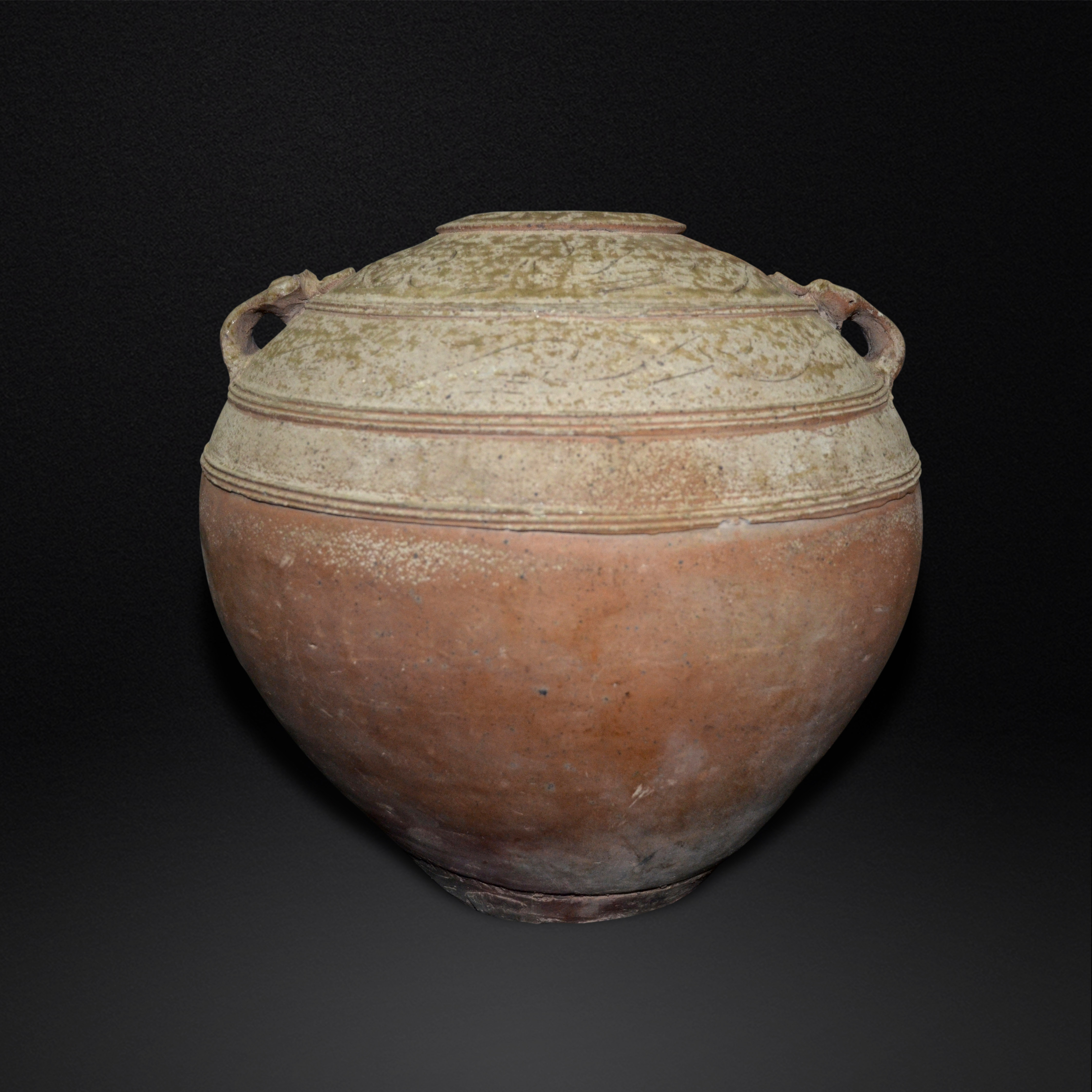 青釉划纹饕餮耳瓿