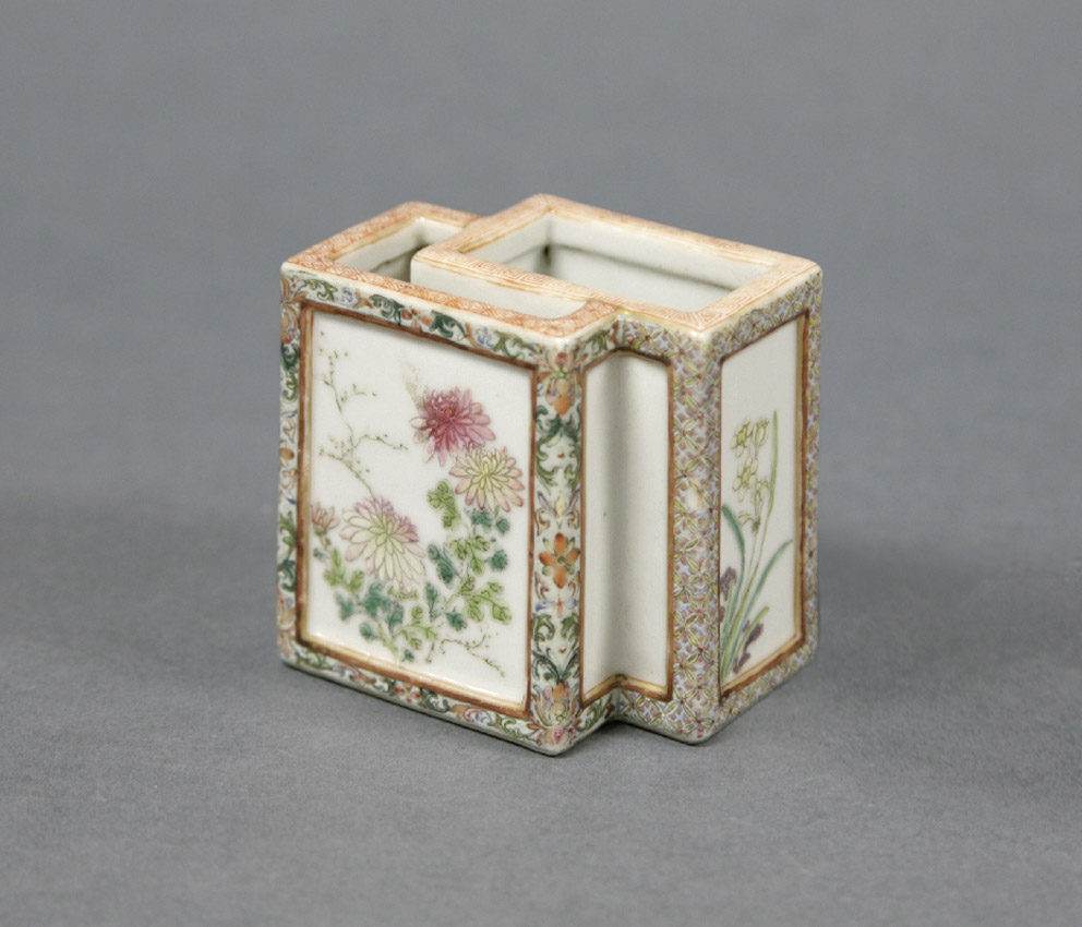景德镇窑粉彩花卉纹双联笔筒
