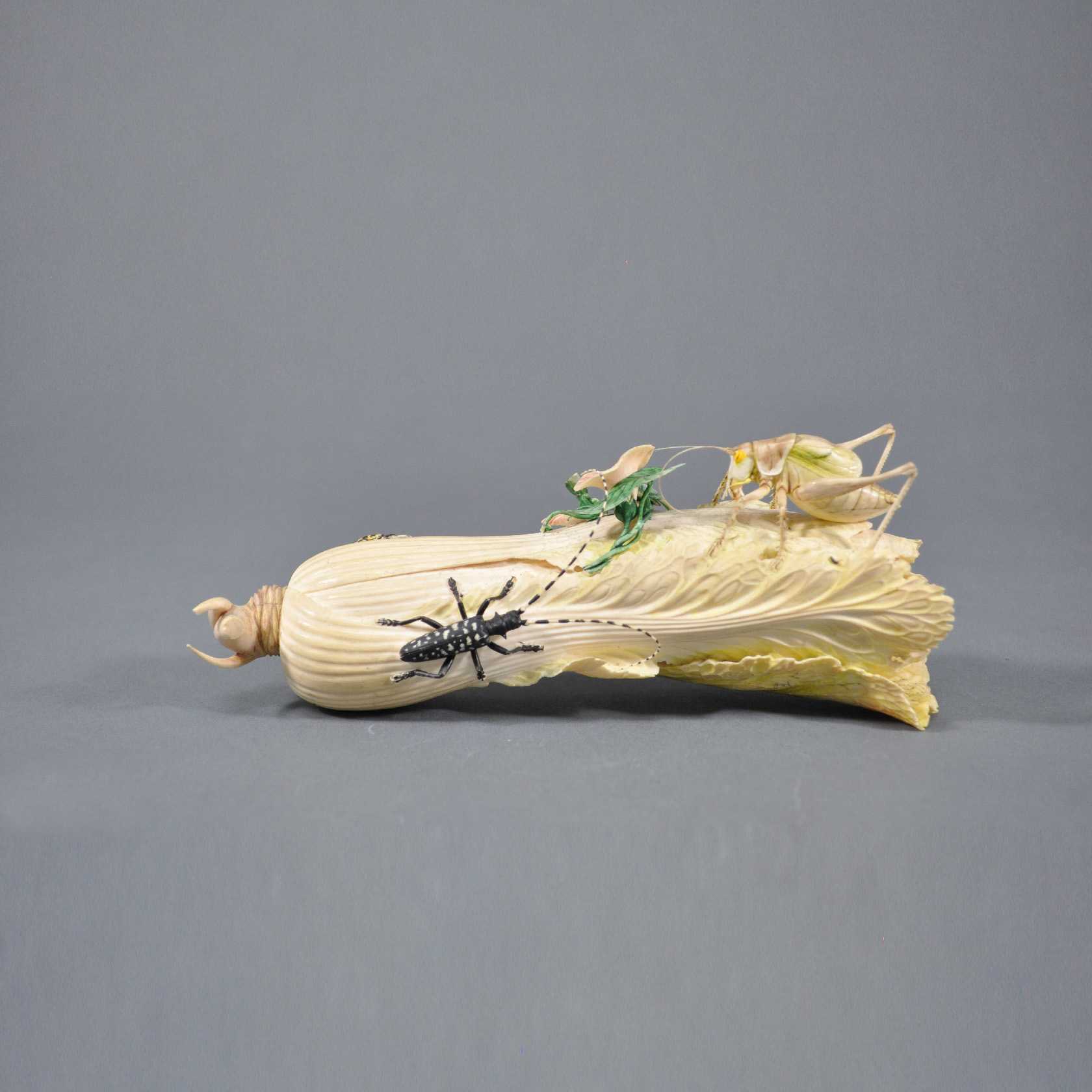 染色象牙雕白菜草虫