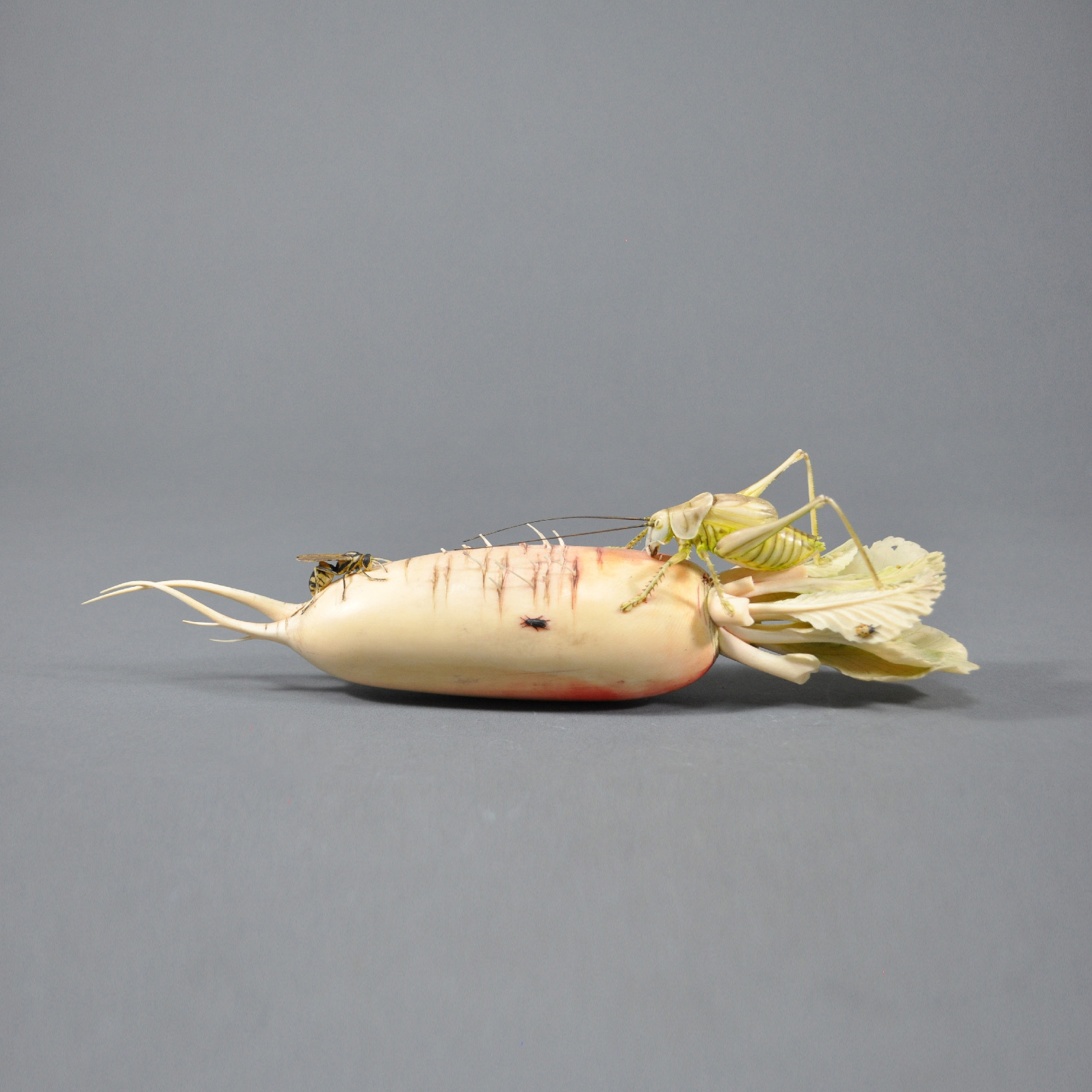 染色象牙雕萝卜草虫