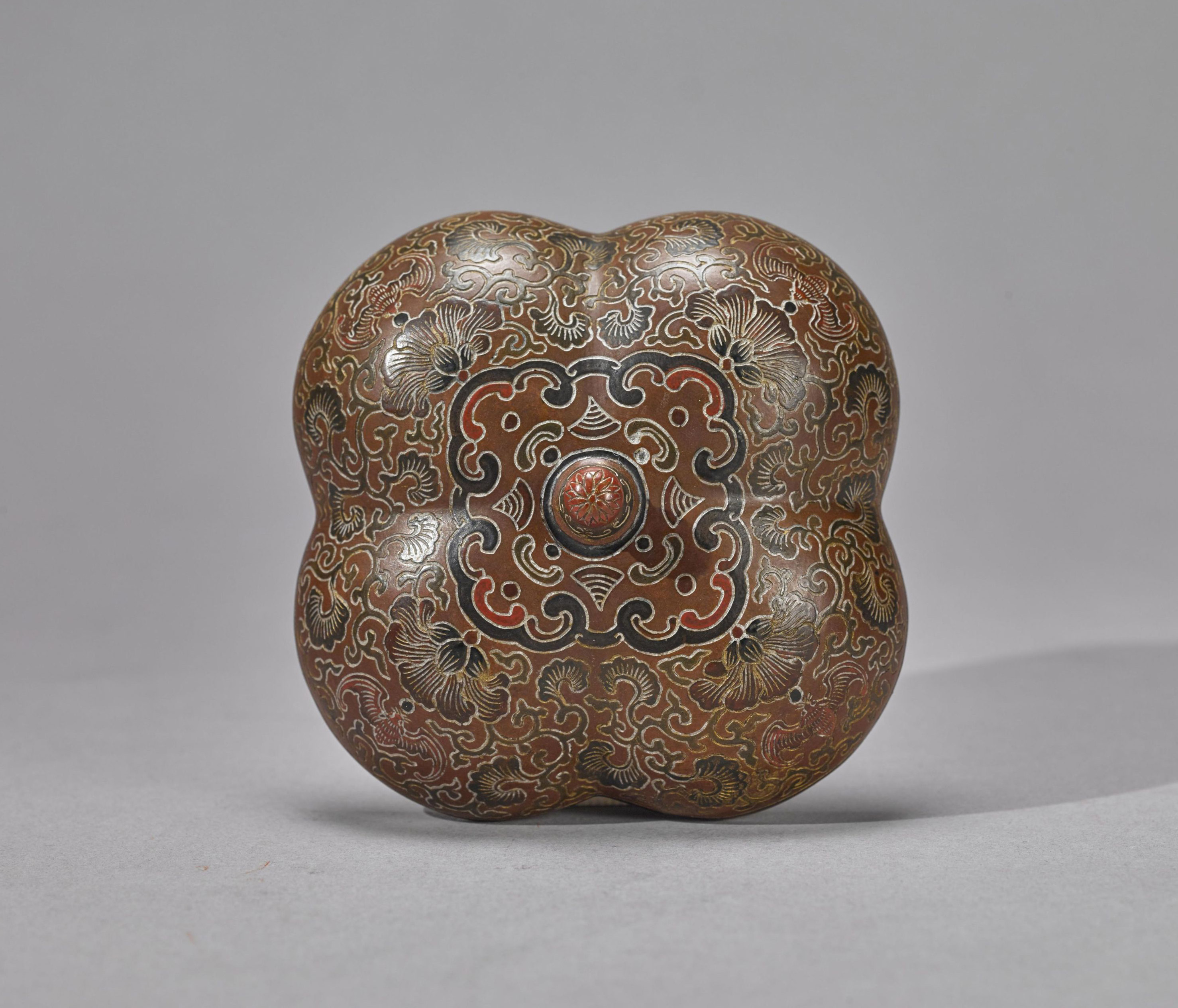 戗金彩漆蝙蝠纹花瓣形盖盂