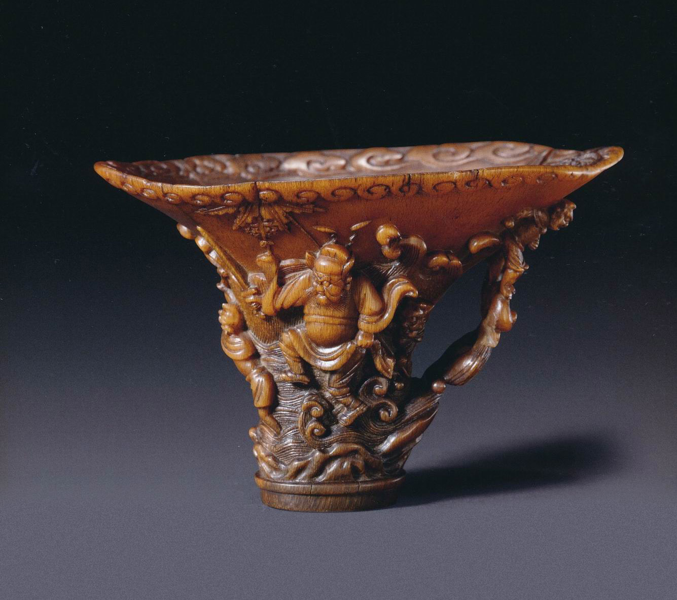 犀角雕钟馗图杯