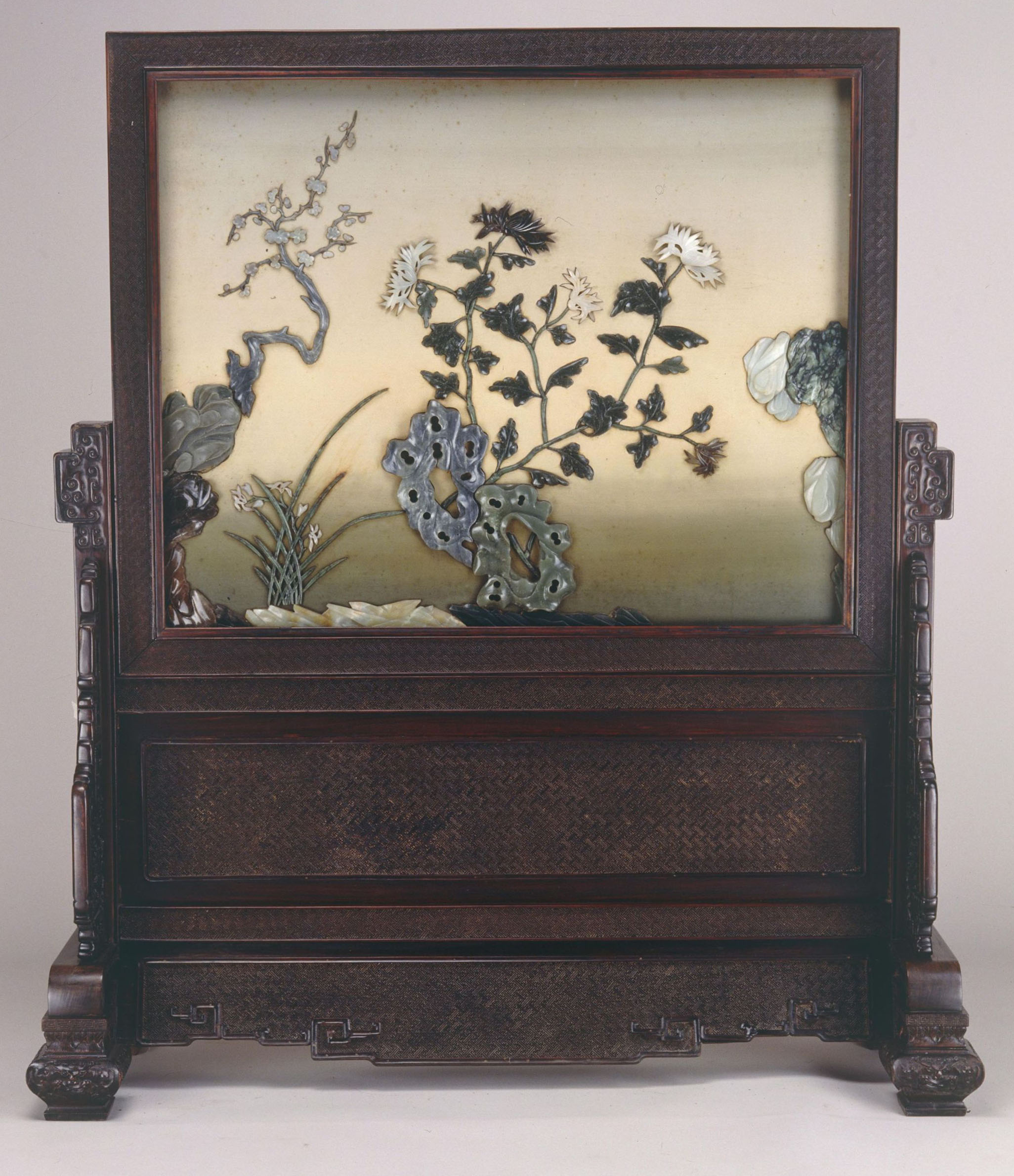 紫檀木嵌玉花卉纹座屏风