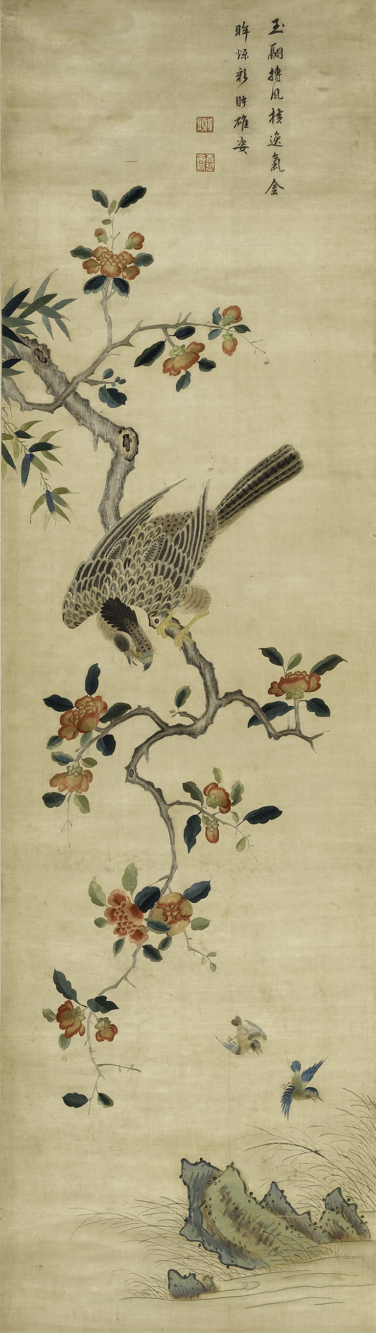 顾绣金眸玉翮图