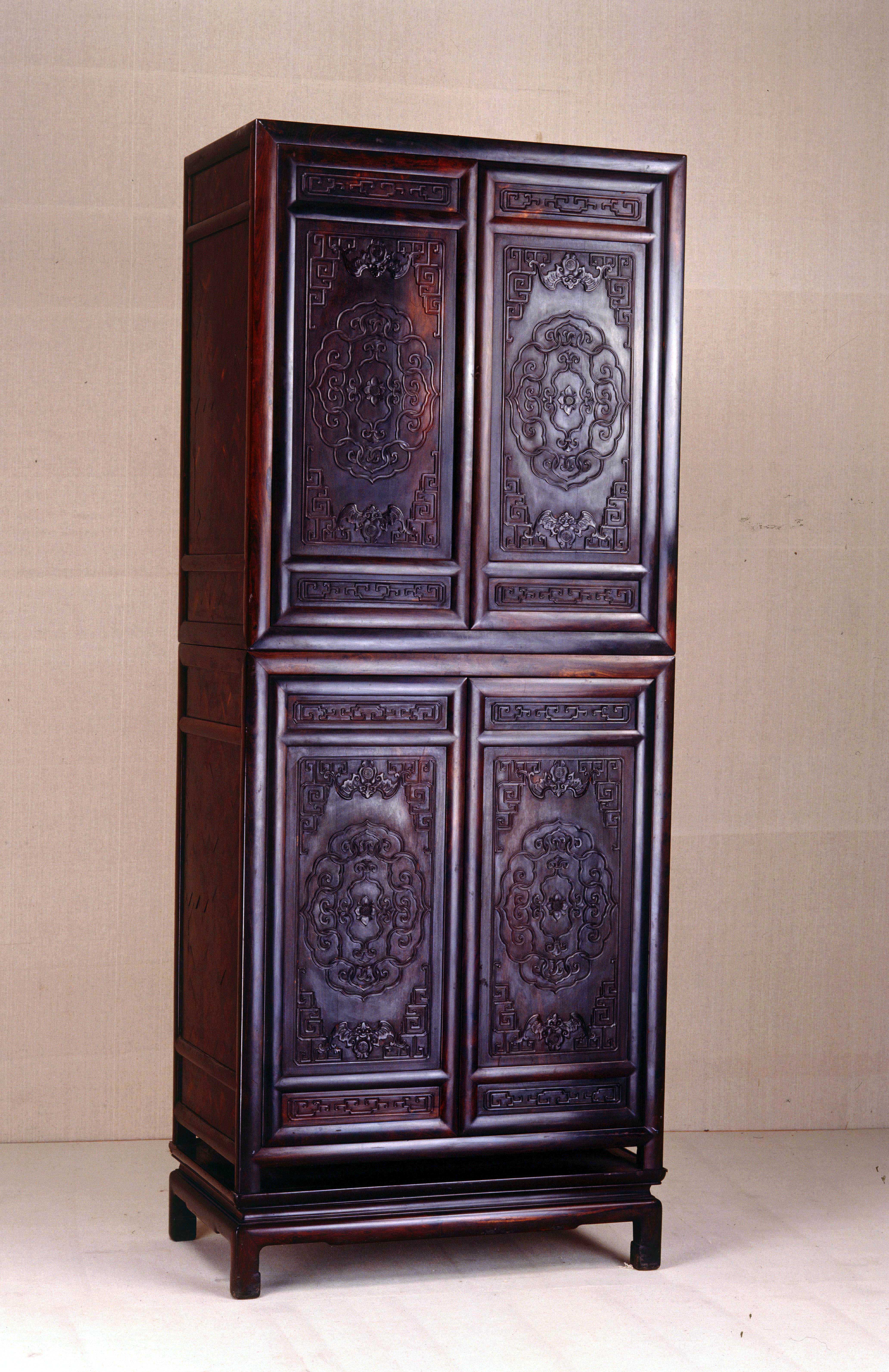 紫檀雕蝠寿纹带几座书柜