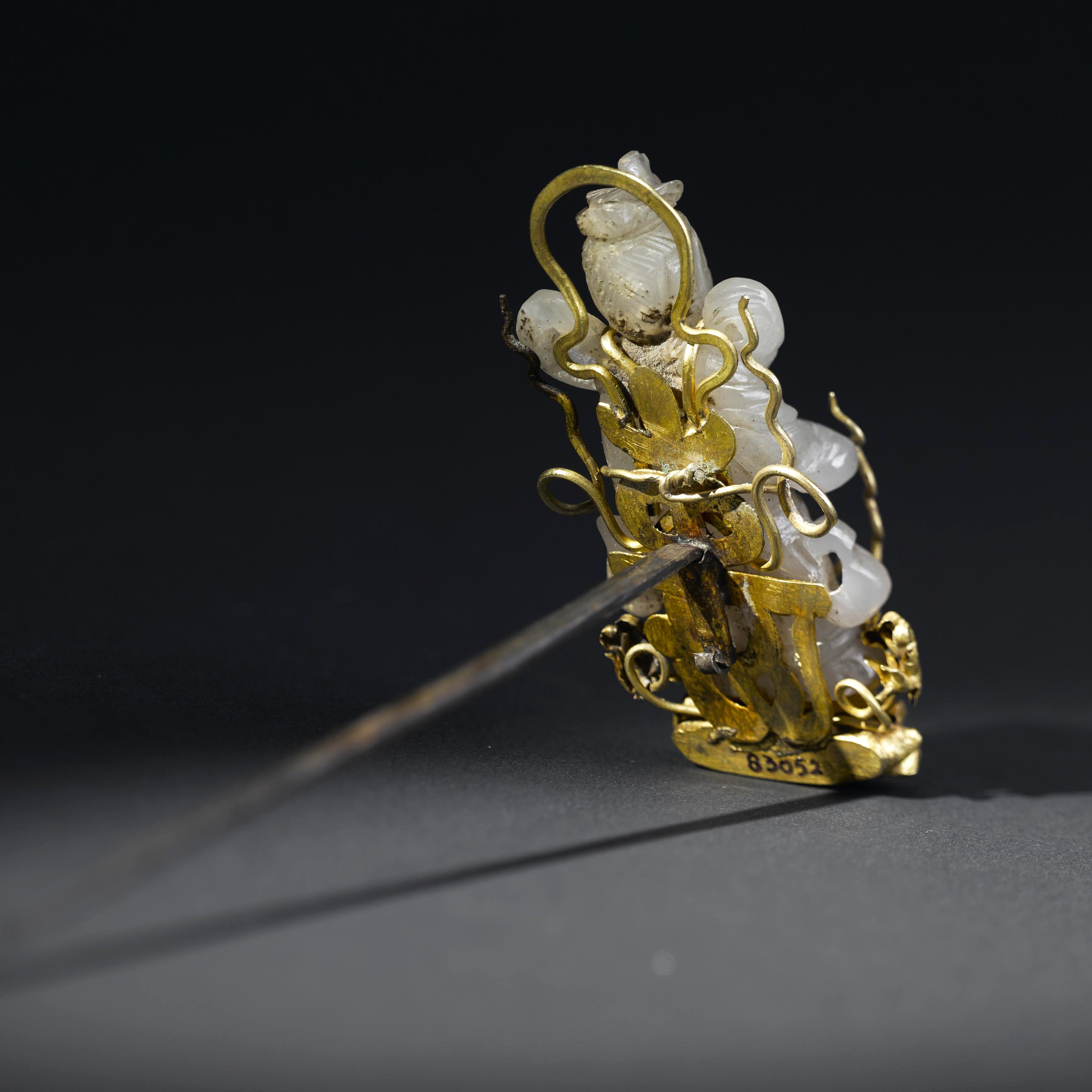 金嵌宝镶玉观音鎏金银簪