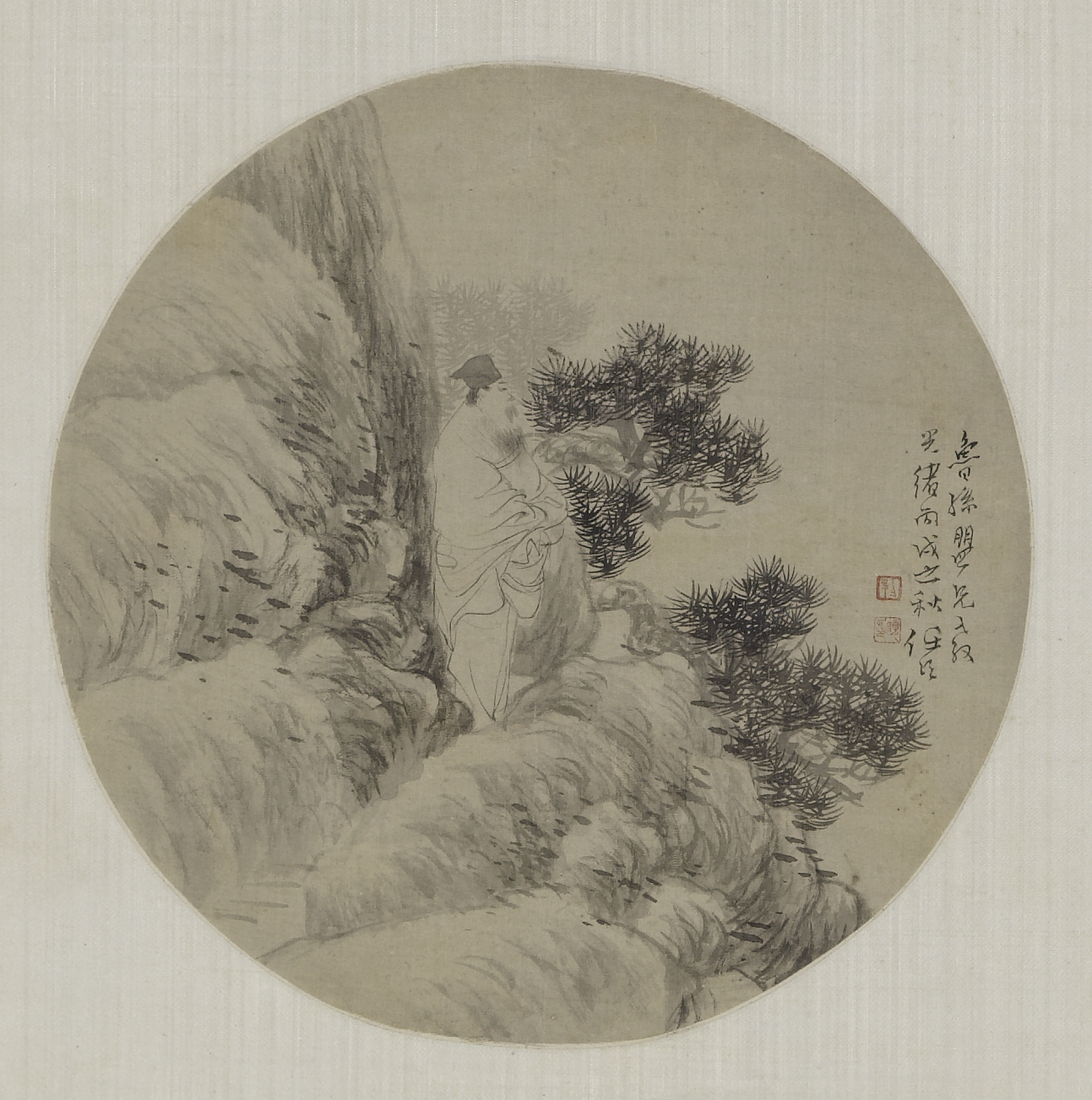 任颐 山水图纨扇轴