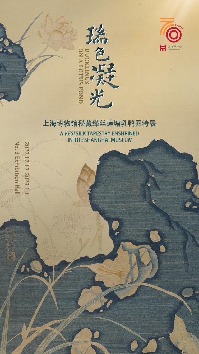 Indeed, Ducklings on a Lotus Pond, the tour de force of kesi, was made possible by a gorgeous tapestry of a weaving technique from the Western Regions, the Chinese art of silk, the regional prosperity of Jiangnan, or the Yangtze Delta, and the elegance and exquisiteness of traditional Chinese painting. In celebration of the seventieth anniversary of its own founding, the Shanghai Museum hereby presents with pride this long-enshrined treasure to public admiration. We hope to unveil its millennium-old beauty and splendor to all the lovers of Chinese art, and more importantly, not only to promote the legendary craftsmanship of kesi but also to accelerate its renaissance, which is long overdue.