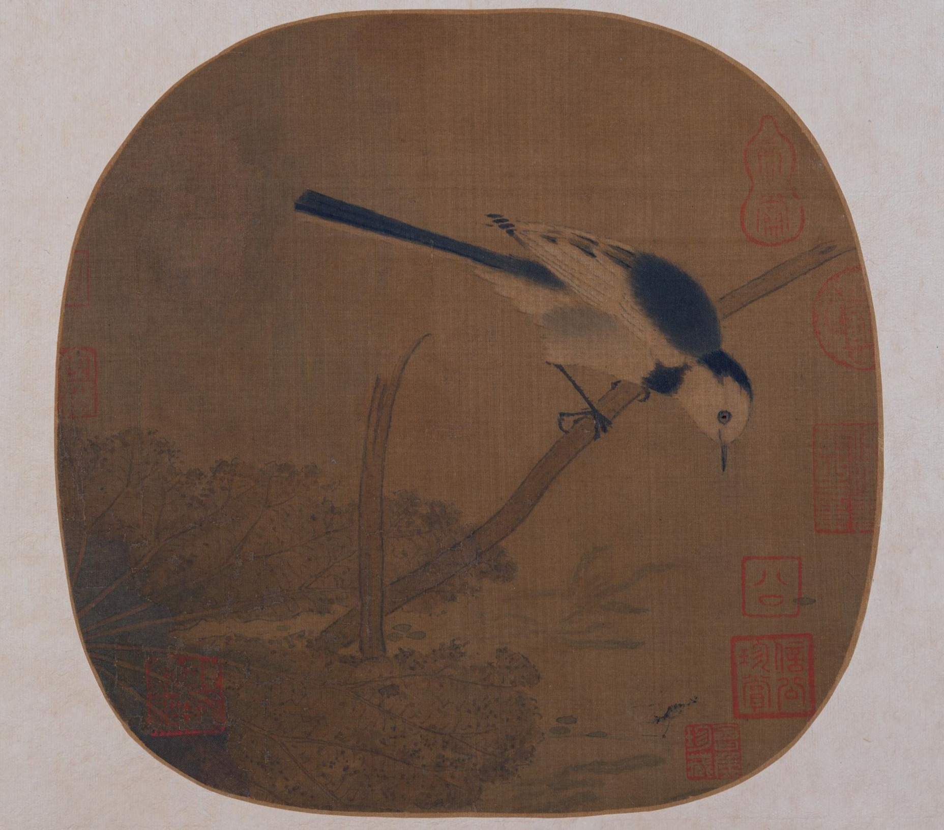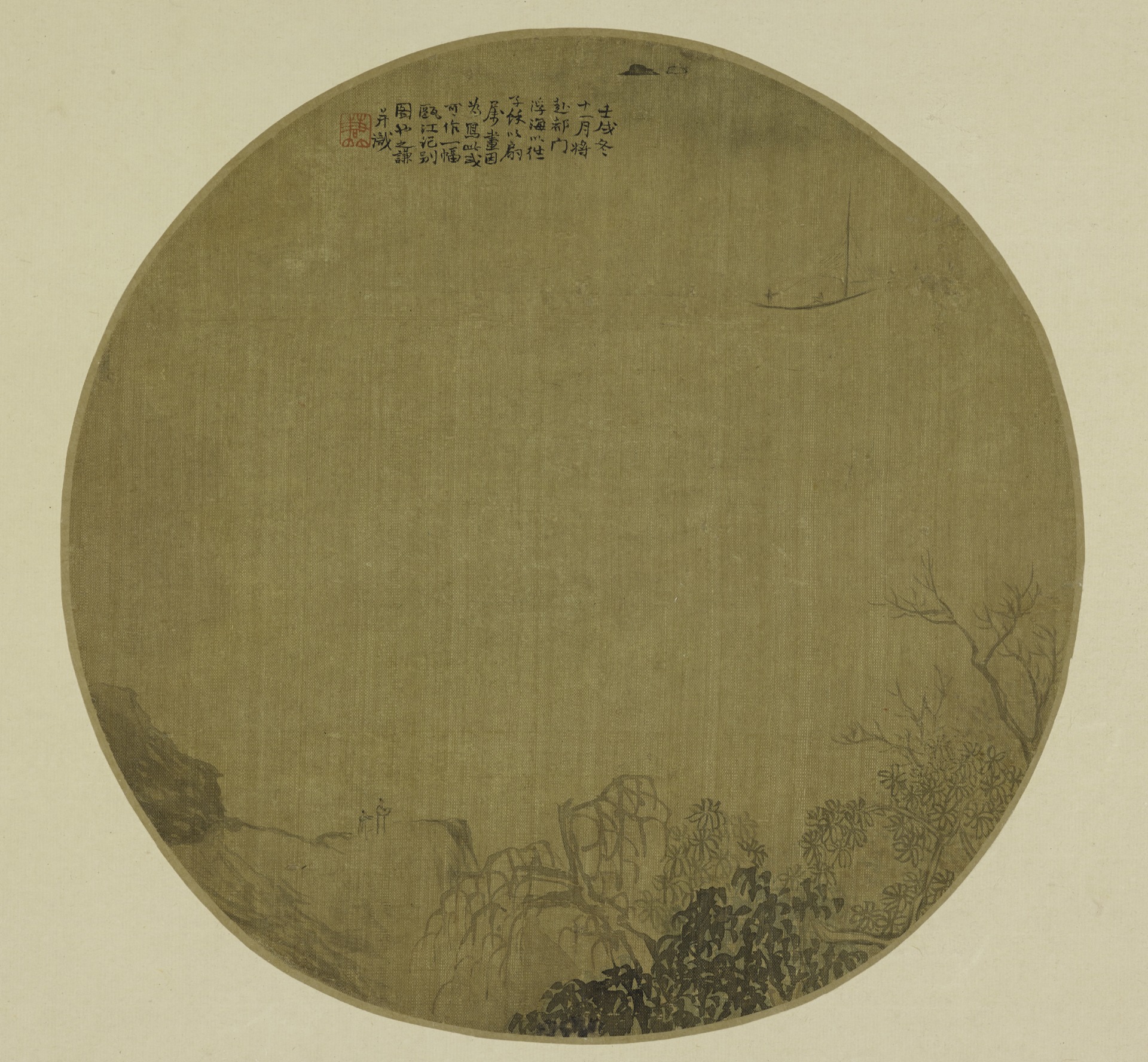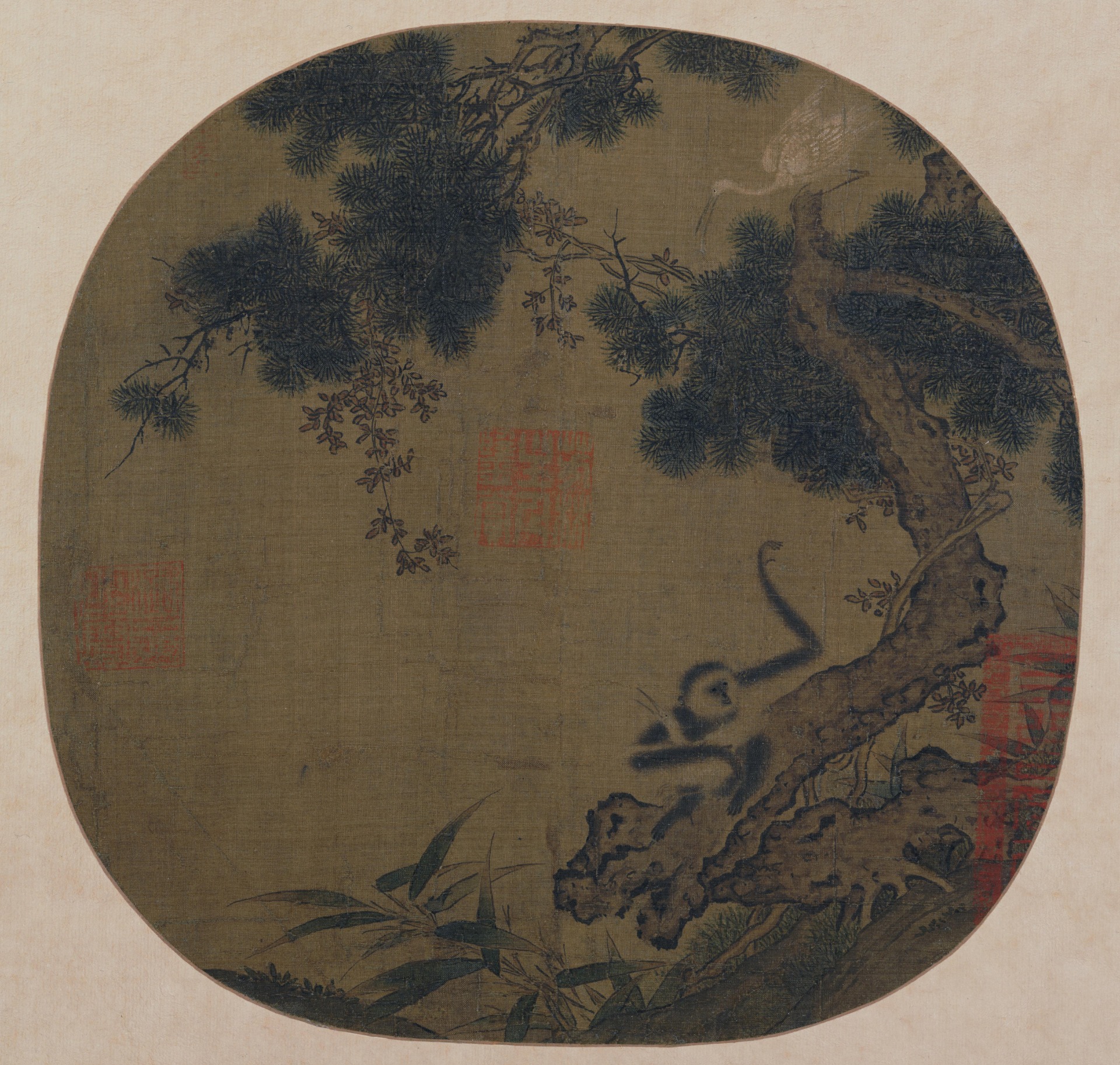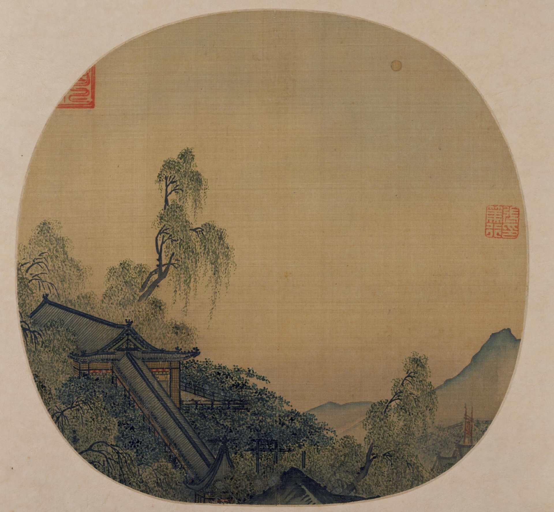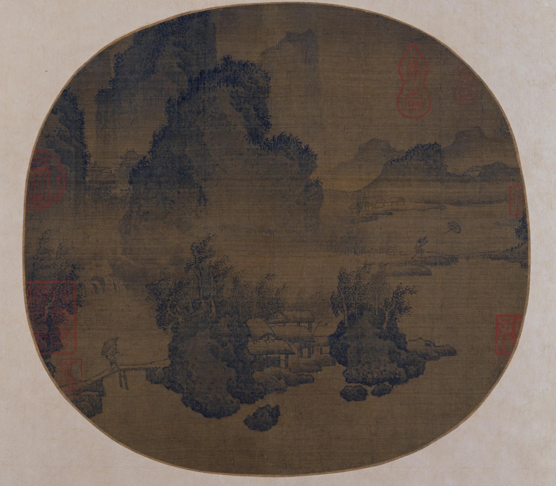 上海博物馆藏扇面书画作品数量丰富,可以千计。就时间而言,从北宋纨扇书画至现代折扇书画,时间跨度近千年。就内容而言,包括山水、花鸟、人物、书法多种题材。在形制上,有扇页和成扇等不同形制。本次展览以“至扇至美”为主题,以扇面书画艺术发展脉络为主线,遴选馆藏宋、元、明、清及近现代不同时期名家精品扇面书画100件。其中,不乏目前存世最早的书法纨扇页——宋徽宗赵佶《草书七言诗二句》;元代罕见的名家绘画纨扇页——盛懋《秋江垂钓图》;明代早期绘画折扇页——谢缙《汀树钓船图》;清初“四王”之一王原祁《仿倪瓒山水图》及缪彤《行书》成扇等存世鲜见的历代精品。