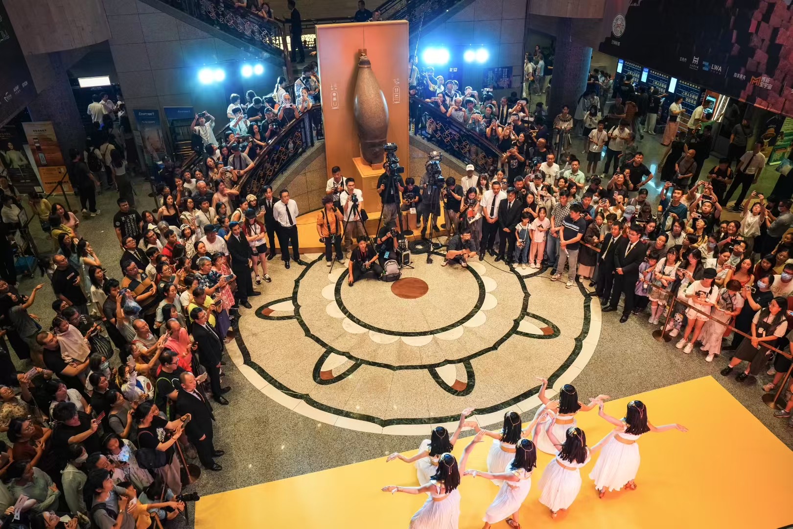 展览最后一周,上海博物馆举办“168小时嘉年华”系列活动,邀请观众共度“博物馆不眠夜”,将展览热度推向顶峰。活动期间,除了展厅全天候开放,上博精心策划推出《金字塔在中国:古埃及文明大展炼成记》新书首发和分享会,该书已成为今年上海书展最受瞩目的“销冠”。举办众神巡游、埃及舞蹈、鼓乐演奏、近景魔术、音乐剧经典曲目演唱等精彩表演,以及夜间外摆集市、互动答题游戏和文创促销等丰富多彩的活动。