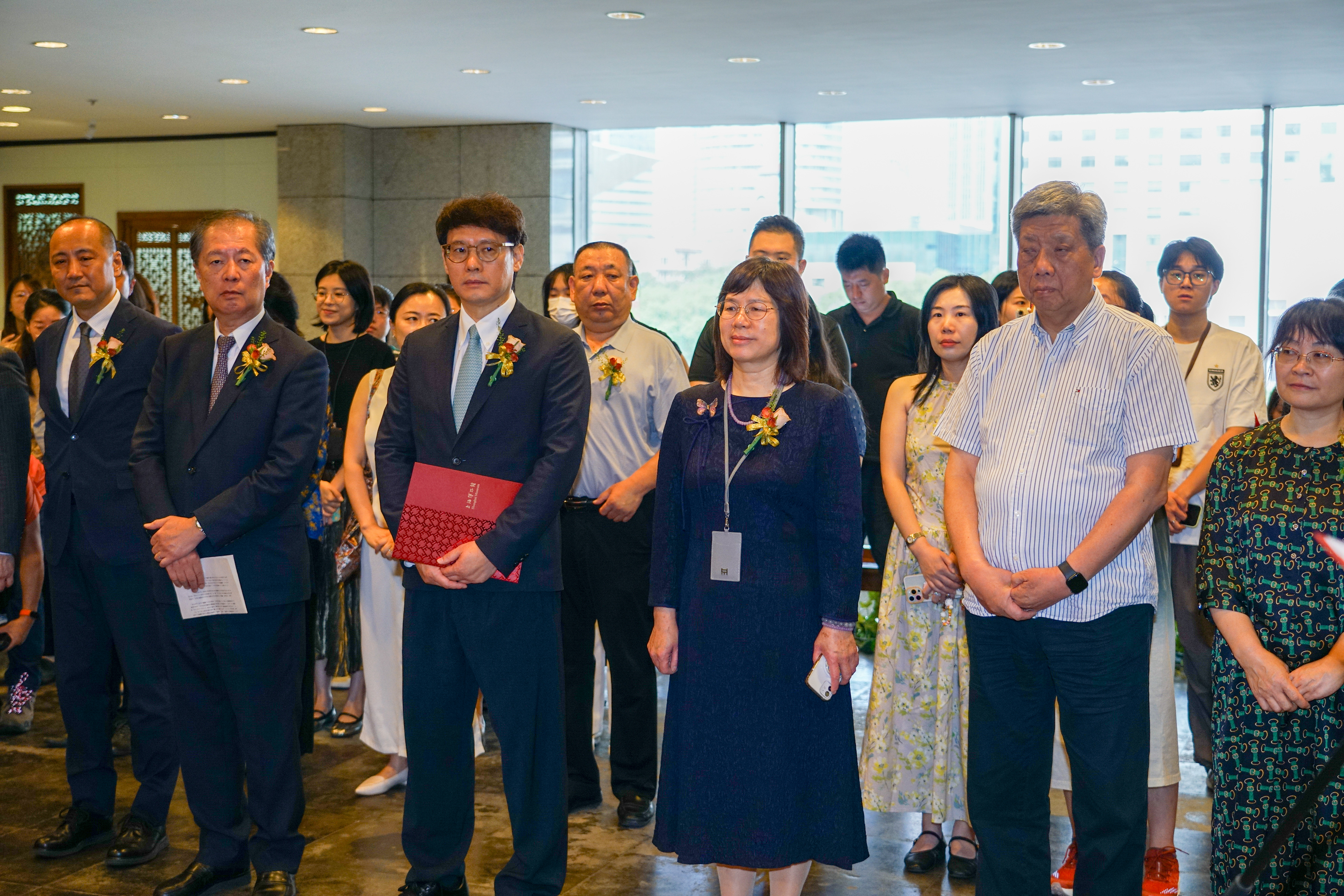 东京国立博物馆馆长藤原诚,上海市文化和旅游局党组成员、上海博物馆馆长褚晓波,上海博物馆党委书记汤世芬,上海博物馆党委副书记、纪委书记王万春,上海博物馆事业高质量发展专项指挥部执行指挥李峰,上海博物馆原副馆长陈克伦等双方代表出席开幕式。仪式由上海博物馆副馆长黄河主持。