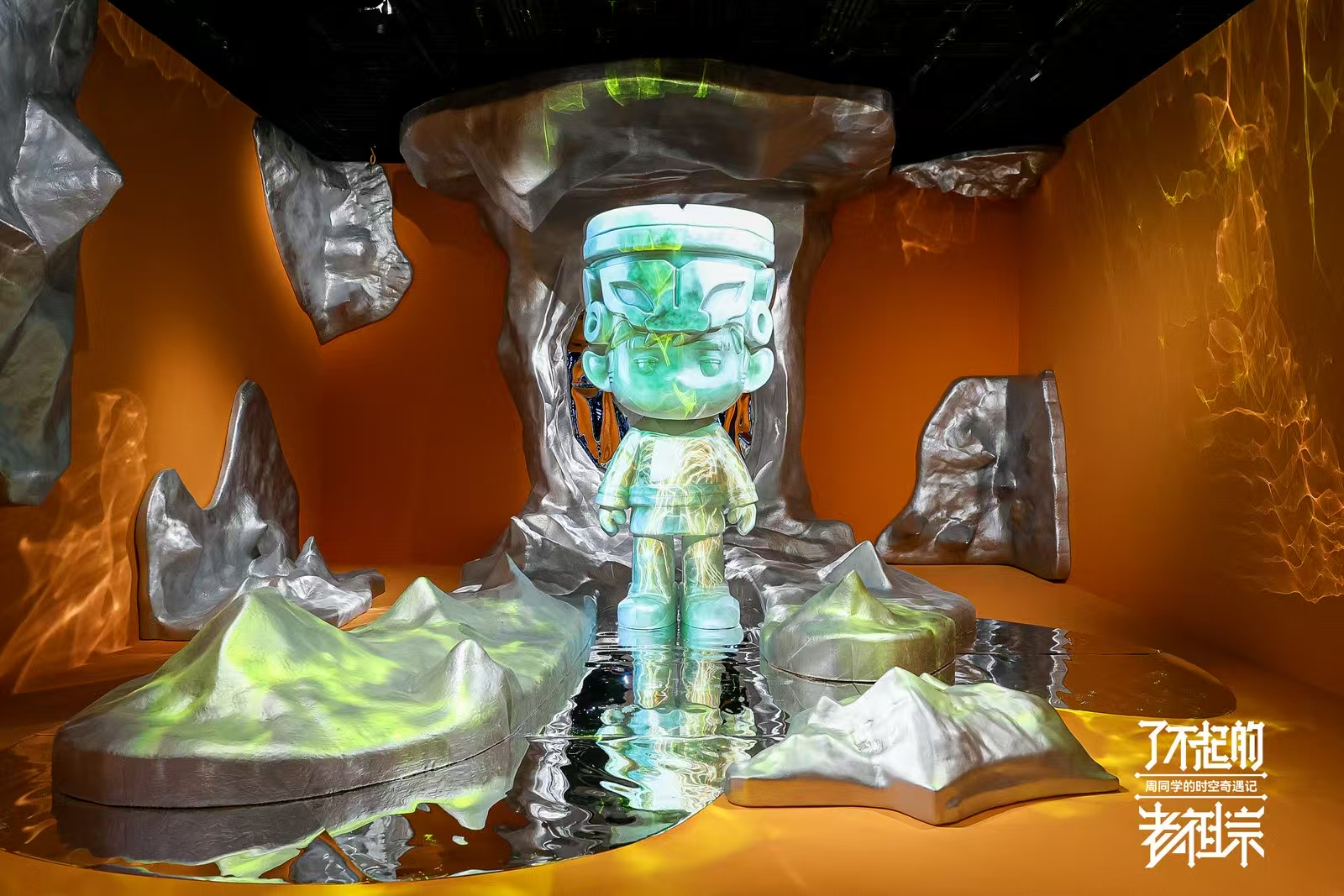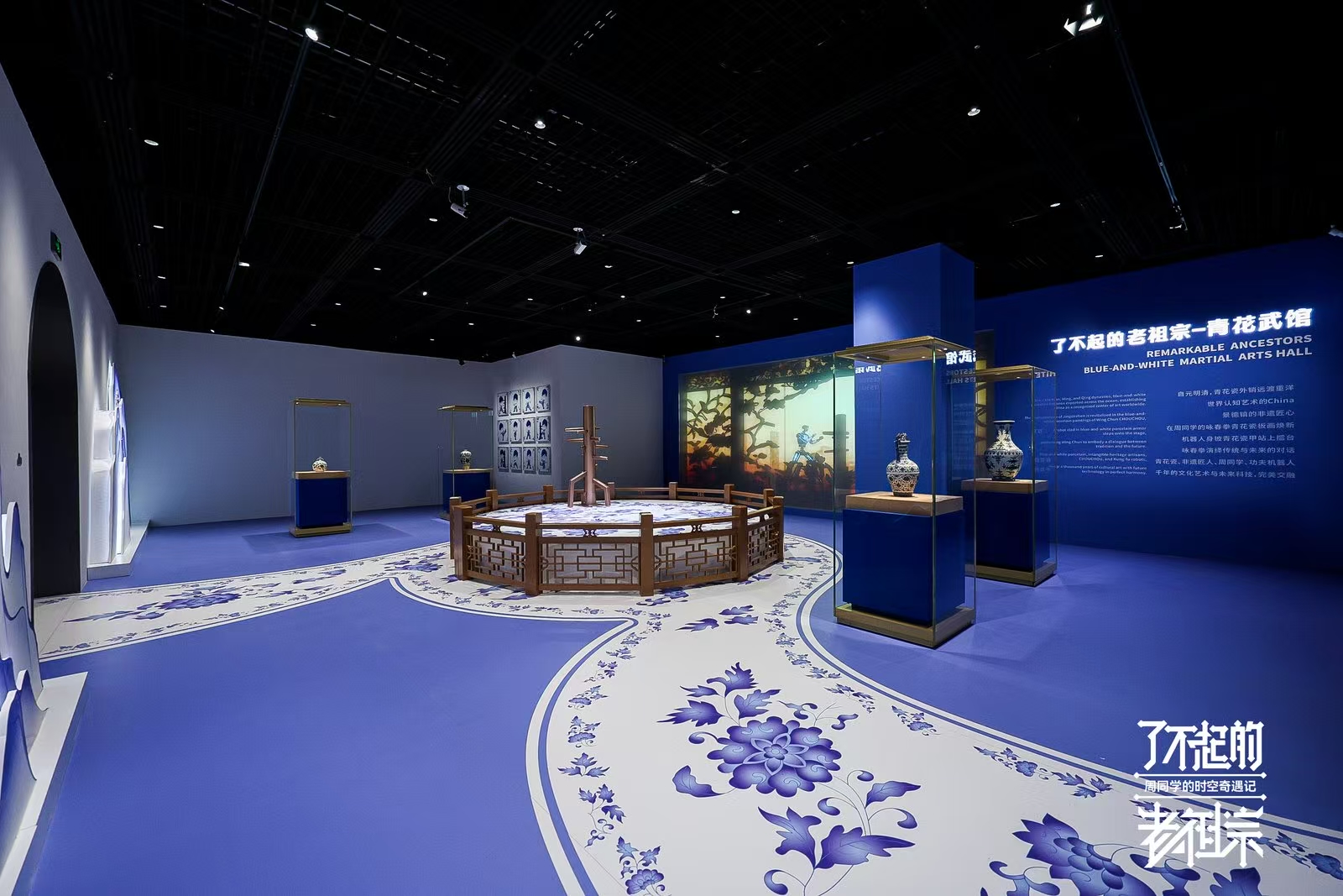 艺术秀中,观众将跟随周同学的时光机,通过光影交错的“时空隧道”展开旅行。在“玉见未来”单元跟随玉神人从古老的仪式中读懂对天地的敬畏;在“青铜跨时代”单元来到3000多年前的商周时代,见证青铜器的鼎盛时期;在“青花武馆”从青花的笔意间看见远渡重洋的文化力量;在“粉彩浪漫”单元感受老祖宗对美好生活的向往。艺术秀还设有“潮流密码”版画区、“周游记沉浸空间”“嘉年华奇幻岛”和“旋转木马”主题文创区,等待着观众们前来探索。