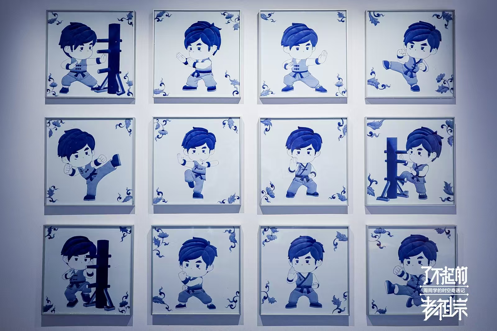艺术秀现场特设《青花瓷》与《龙拳》打卡墙,观众可以在熟悉的文字中重温青春记忆,感受音乐与文物的双重感染力。在这里,上海博物馆的馆藏文物是一个个充满故事的生命体。艺术创作的“灵感”从这些文物中被提取出来,通过周同学这个IP,转化成年轻人能共鸣的情绪价值,让文化变得可触摸、可感受、可传播。