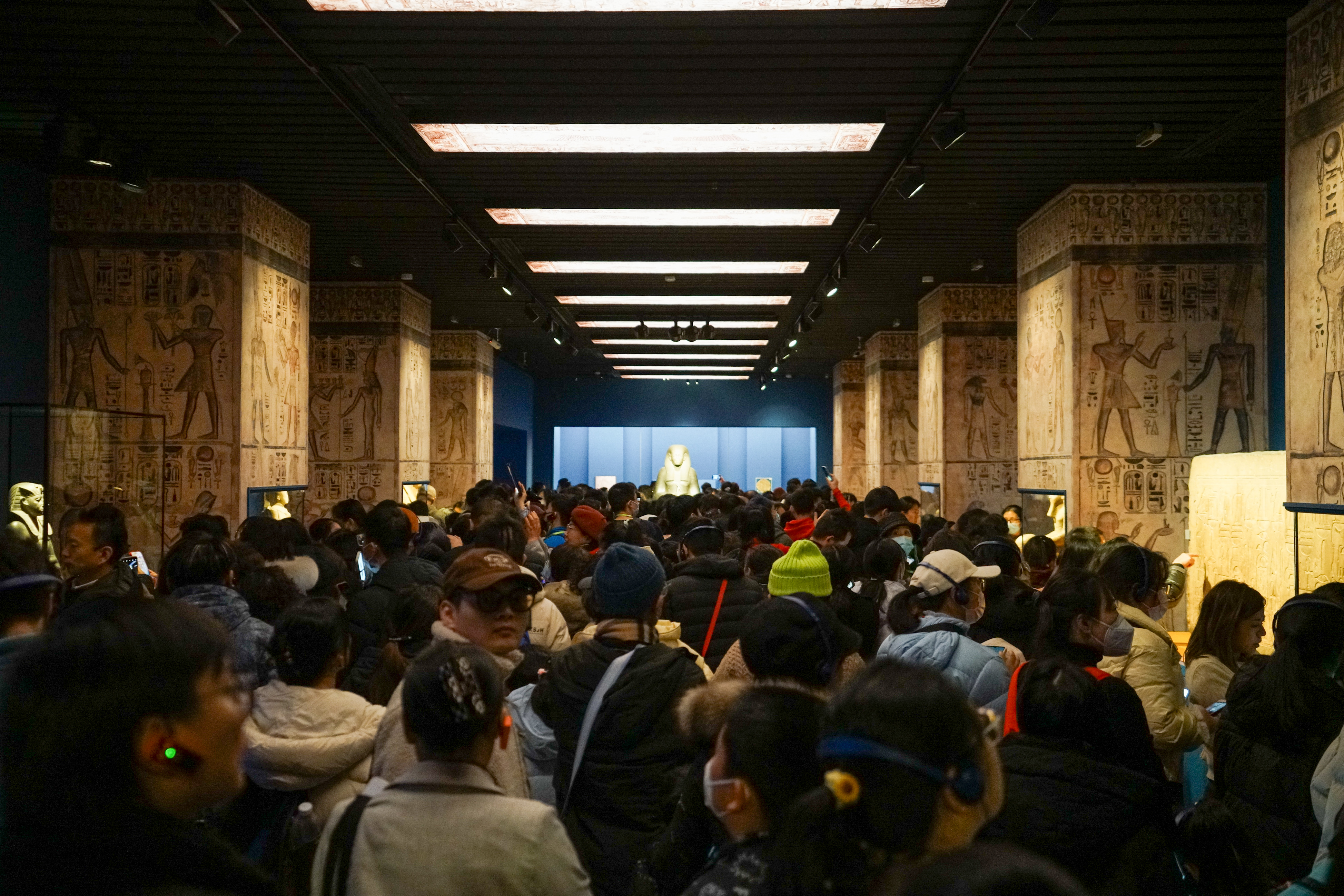 四是打造“大品牌”,扩大全球影响力。“十四五”期间,上博以“数字+”“旅游+”“文创+”推动中华文化破圈迭代,不断提升社会知名度和海外影响力,联合航空、交通、酒店、商业等多领域,构建文旅商体展消费新场景,推出“空中博物馆”、“宠物友好型”航班、文创快闪店、168小时嘉年华、博物馆奇“喵”夜、今夜无眠·上博十二时辰艺术嘉年华等活动。古埃及文明大展带动城市综合消费超350亿元,展览收入对城市经济的拉动效应达1:48,成为“一个展激活一座城”的生动写照。