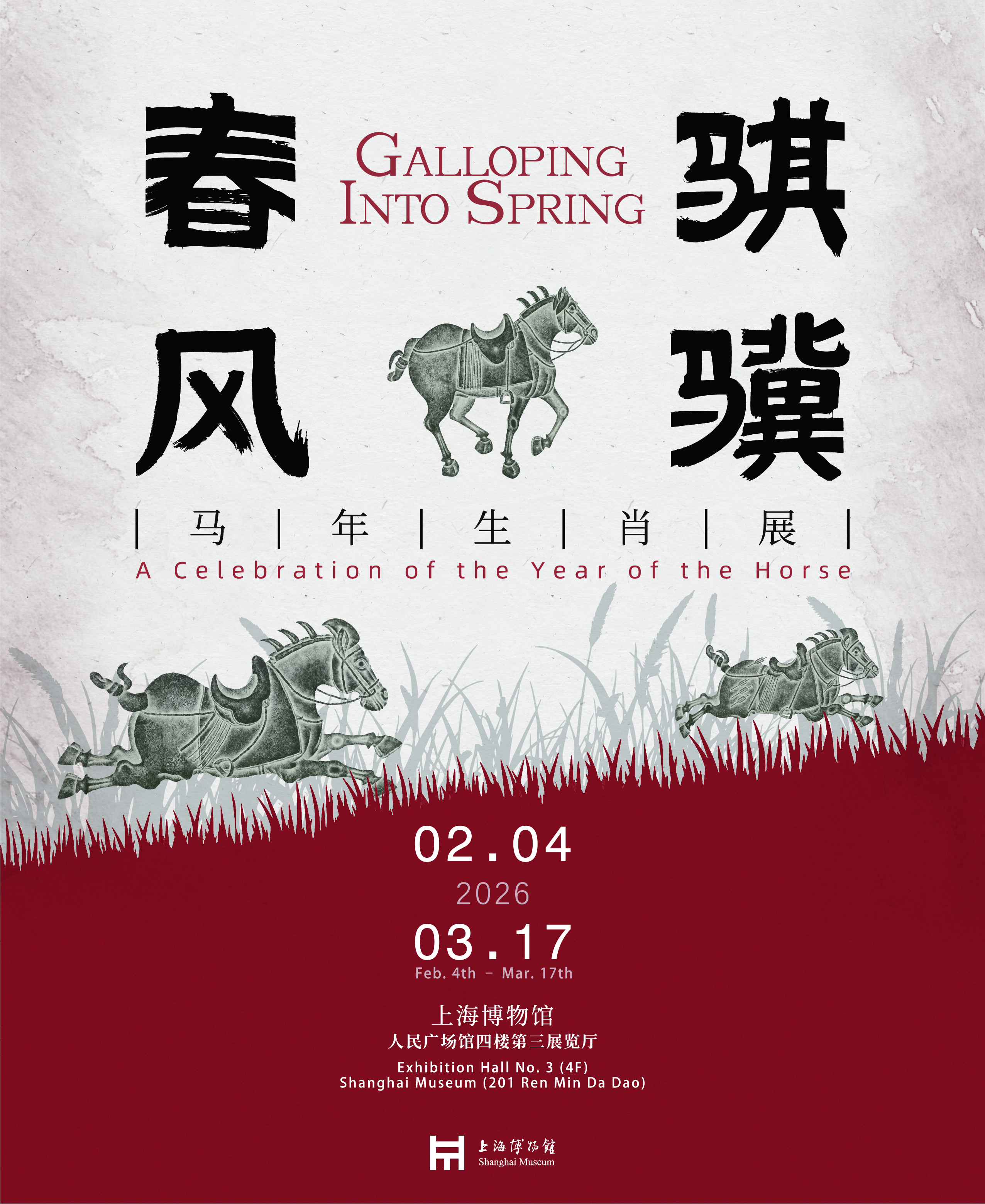 丙午马年,春回大地,上海博物馆一年一度的生肖迎春展如约而至。2026年2月4日,“春风骐骥:马年生肖展”在上博人民广场馆启幕。展览以“春风骐骥”为题,既谐“奇迹”之音,更喻骏马得遇春风,恰如盛世启新程、宏图逢良时,在万象更新中驰向无限可能。