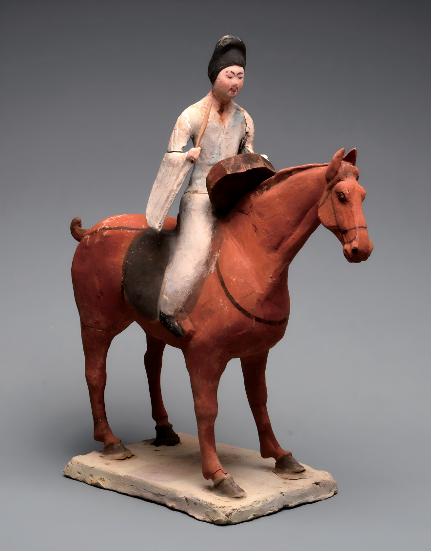马,自古便是融贯华夏文明脉络的重要伙伴与精神象征。展览甄选来自甘肃省博物馆、甘肃省文物考古研究所、咸阳博物院及上博馆藏的16件/组马主题文物,分为“鞍马征尘”“昭陵六骏”“骏影流光”“诗情画意”等版块,展现中华马文化的多元内涵与吉祥寓意。观众将在其中邂逅与“马踏飞燕”同出于武威雷台汉墓的青铜车马,感受汉代车骑仪仗的赫赫威仪;欣赏凌空踏云的玉仙人奔马,品味汉代玉雕中的灵动神韵;近观出自吐谷浑墓葬的唐代骑马击鼓俑,领略丝路交往的生动瞬间;在徐悲鸿《饮马图》与张大千《临曹霸玉花骢图》中,体会墨韵流淌中的马魂风骨。