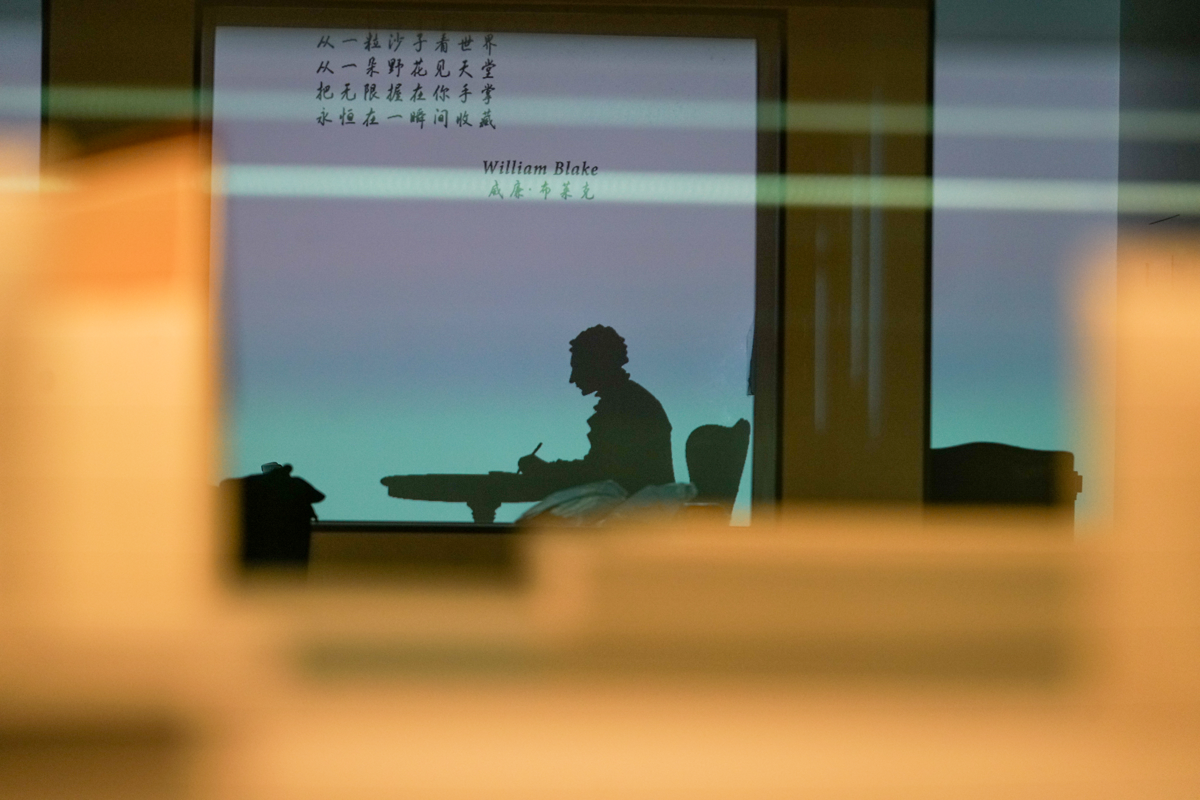 展厅空间以“揭秘”为设计原点,呼应本次展览的英文主题“WRITERS ‘REVEALED’”。透过第一单元的一扇“窗”,观众可隐约望见展厅深处作家们模糊的身影;随着观展推进,距离渐近,理解渐深,直至展厅最后,观众与作家的影子仿佛步入同一时空,完成一场静默的对话。展厅上方流动的作家名言,则串联起这场作家与观众之间的因缘际会。贯穿全场的两个视觉元素——作家姓名带与金属嵌条,灵感来源于莎士比亚与狄更斯故居的建筑细部。它们如同一道隐形的线索,连接起这场跨越时空的文学相遇。