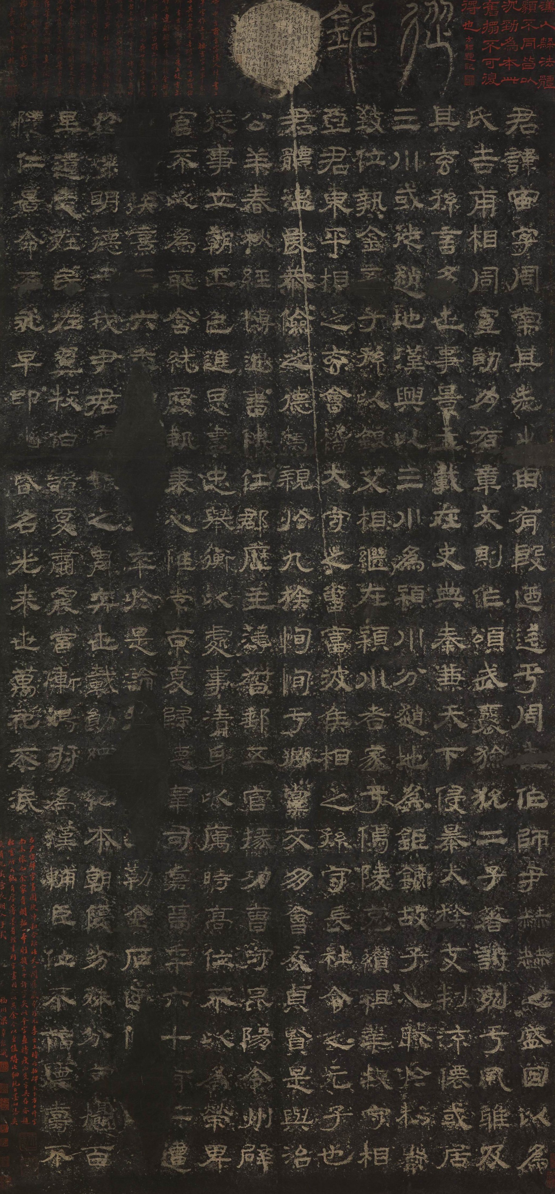 The Yin Zhou Stele, fully titled Stele of Yin Zhou, an Official of Yuzhou in the Han Dynasty, was carved in the sixth year (177) of the Xiping era. After its initial discovery in Weichuan of Henan in the first year (1312) of the Huangqing era, the original stone was lost for a time before re-emerging during the Wanli reign (1573-1620). It is now in Yanling County Middle School in Henan province. The calligraphy is characterized by slender, rounded, and firm strokes, exhibiting influence from the Qin-dynasty seal script. This is a complete Ming-dynasty rubbing, once authenticated and collected by Fan Guangwen of the Qing dynasty.