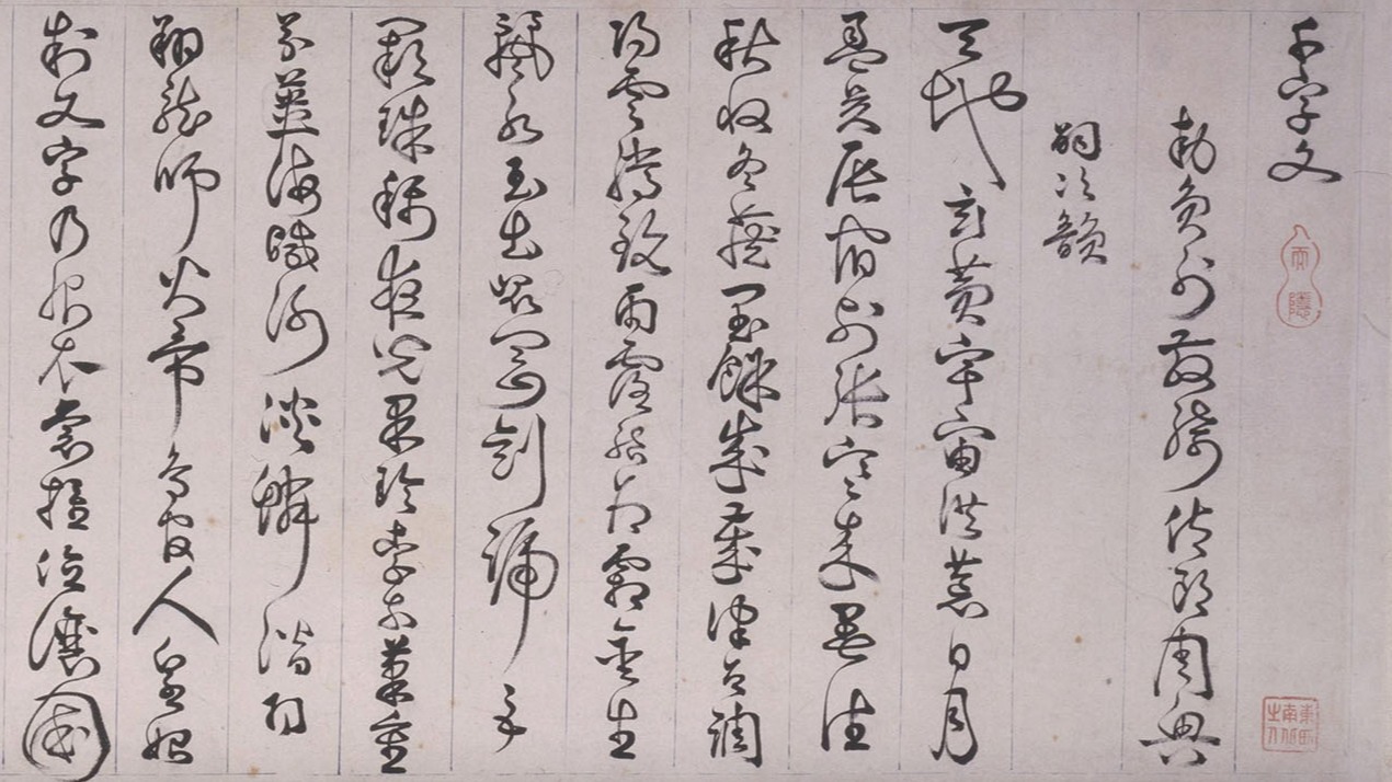 Zhan Jingfeng (1532-1602), also known by his zi (designated name) Dongtu and his hao (literary name) Baiyue Shanren, was native to Xiuning in Anhui. He was a juren (a successful candidate in the provincial examination) in the first year (1567) of the Longqing era, he was adept in painting and calligraphy, especially skilled in cursive script. This scroll transcribes One Thousand Characters by Zhou Xingsi of the Liang dynasty and two poems by Zhan himself. This calligraphy was accomplished in the 26th year (1598) of the Wanli reign, when the artist was 67 years old.