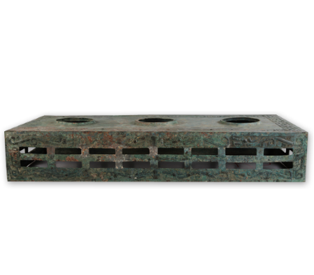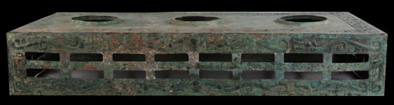 1928年宝鸡戴家湾出土。长方形台座,台面中部有三个椭圆形中空突起的子口,用以嵌置大件酒器的圈足。至于当时究竟放置什么器物,长期以来虽有种种不同的说法,但因同出器物久已流散,现已无法确定。