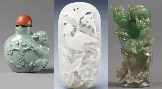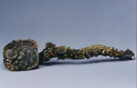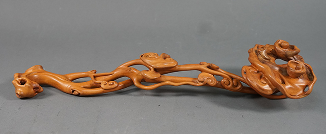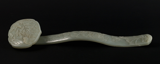 如意结构一般由首部和柄部组成。早期如意首部多呈手型,魏晋时代佛教持物则常见心型或云叶型首,宋代又出现了首部如灵芝状的如意,成为后世主流式样。明清如意造型多样,常见的有首柄式、两头式和三镶式。清代宫廷尤为钟爱三镶如意,其形制庞大、堆料贵重,有首尾柄三个如意头,是极为名贵的陈设器。用于镶嵌的如意头往往采用复杂的图案设计与繁重的雕镂,图案多寓意吉祥富贵,雕饰更极尽华丽精巧之能事,充满奢靡之风。