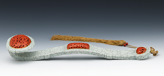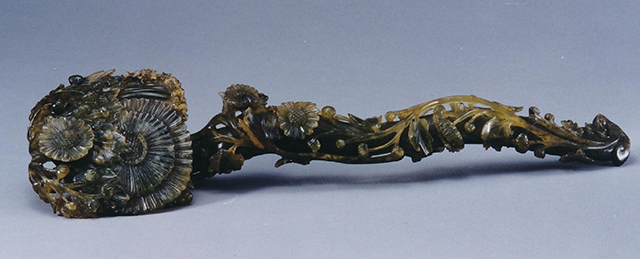 早期实用的如意多以竹、木、骨、角等常见材质制成,随着用途的拓展变化和喜庆祥瑞寓意的增强,制作用料也日益丰富名贵。文献记载魏晋时期士人有使用铁如意者,唐代法门寺地宫也曾出土唐代鎏金银如意。明清以降,如意制作日益奢华精美,材质选取极为广泛,举凡金、玉、铜、翠、漆、珐琅、水晶、珊瑚、玛瑙、松石、象牙、犀角、琥珀、蜜蜡、陶瓷等无所不及,竹木如意则以其“素质或轻于流俗,贞姿或重于高贤”,为知识阶层所爱重。