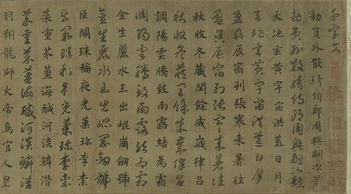 绢本 赵构(1107-1187),字德基,宋高宗。工正、行、草书,少即喜揽笔作字。笔法端雅淳厚、涵泳隽秀, 盖以得力于智永为多,又尝深究本朝黄庭坚书,亦颇能得其神髓。 此卷是吴湖帆于1930年在上海购得。