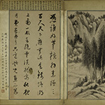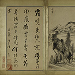 万历四十六年(1618) 纸本 水墨 有董其昌自签:“画禅室小景四幅,戊午(1618)三月。”可知作者时年六十四岁。 董其昌在绘画理论上的最大贡献,莫过于画分南北,以禅喻画。吴湖帆钤“宝董室”印于册上,实属双美。此印为其外祖父沈树镛请钱叔盖所治,不幸散佚他处,后终得完璧。今与董氏画作相映成辉。吴湖帆外祖沈氏与其本人皆以“宝董”名室,此为出处之一。