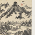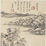 康熙六年(1667) 纸本 水墨/设色 王时敏(1592-1680),字逊之,号烟客,江苏太仓人。清初“四王”之一。此图作于康熙六年(1667),作者时年七十六岁。 据吴湖帆《吴氏书画记》中所载,此册原为蒋祖诒所藏,甲戌(1934)春,吴湖帆“于密韵楼过读数次,实堪艳羡,乃以家藏第一宋钧窑洗与定窑碗、汝窑、官窑三碟,凡五宋瓷易得之,以为梅景书屋藏四王、吴、恽画事之冠冕云。乱世闲情,聊足自慰耳”。足证此册之至精。