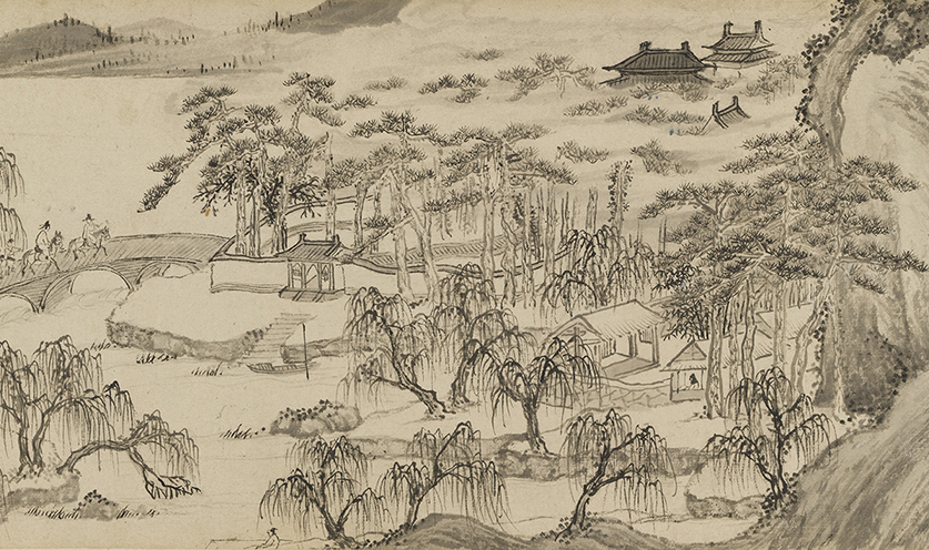 隆庆五年(1571) 纸本 水墨 钱穀(1508-1578后),字叔宝,号罄室,江苏苏州人。此图系钱氏为大藏家王世贞所作,作者时年六十四岁。 据《丑簃日记》载,1934年3月,吴湖帆赴王文心家观画,以二千六百余元购得此卷及仇英《竹梧消夏图》轴(现藏武汉市博物馆)等绘画八件,并以六百元替彭恭甫代购王时敏《仿大痴小幅》一件。是梅景书屋之外的另一重要购藏途径。